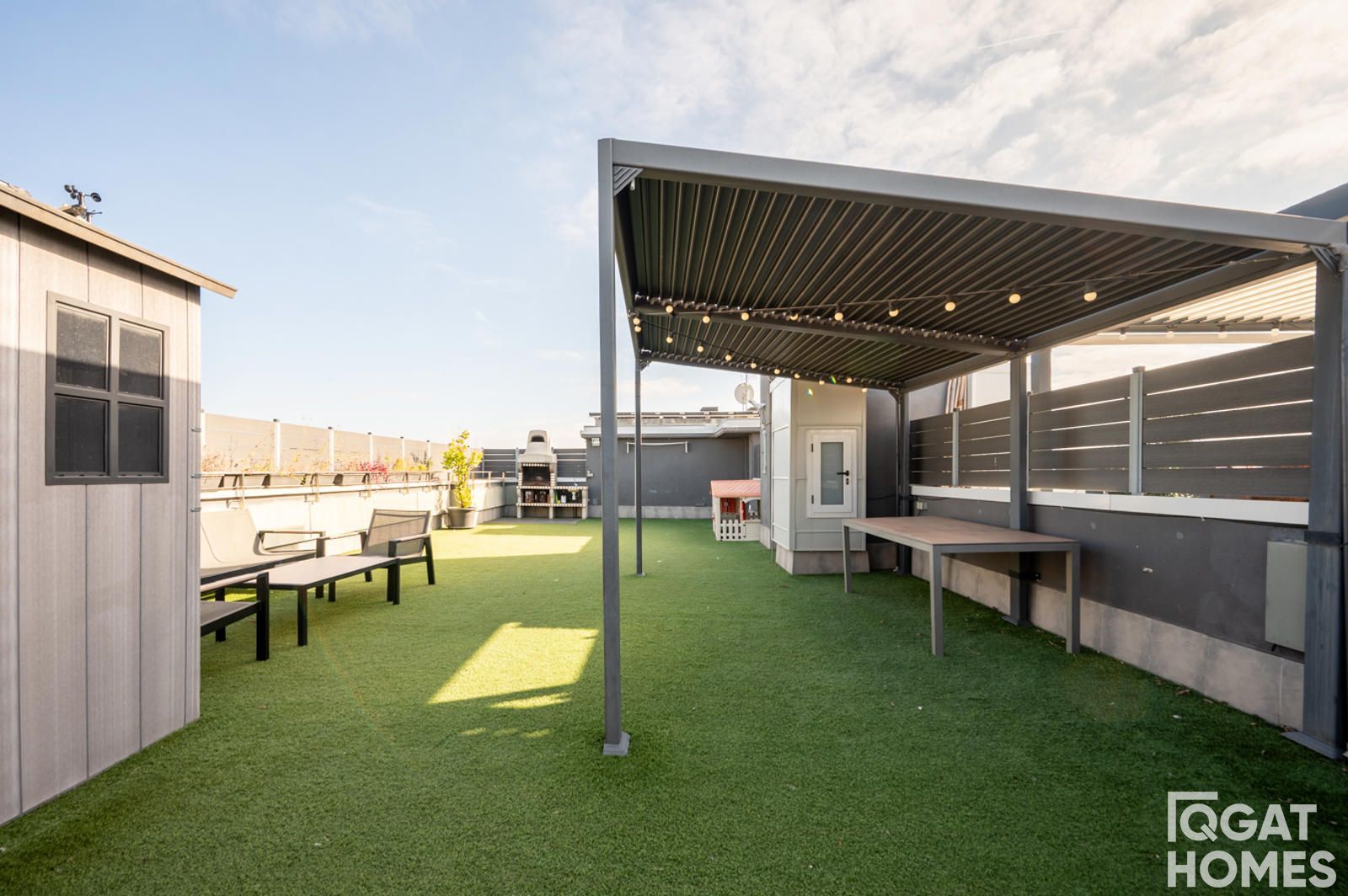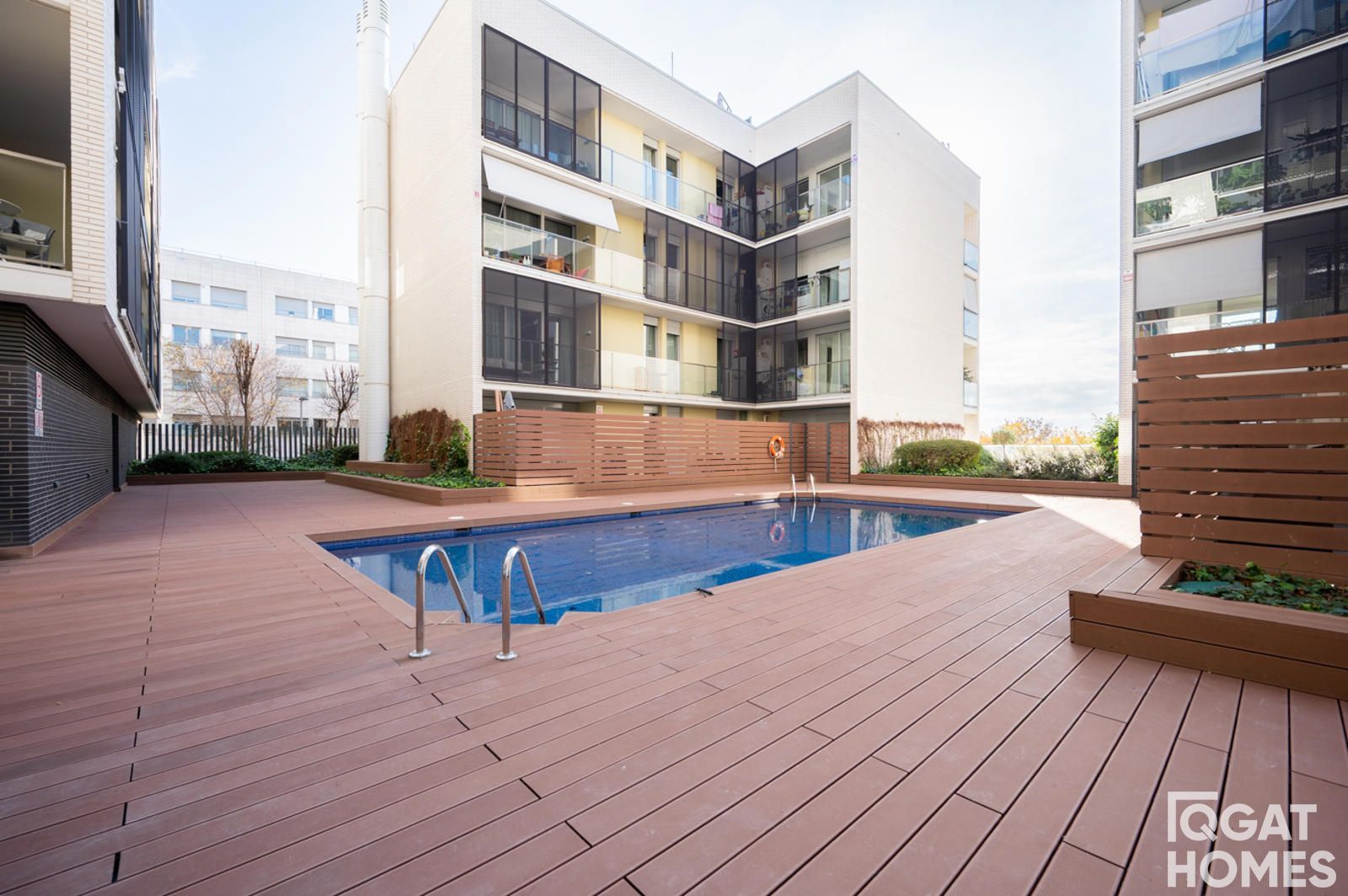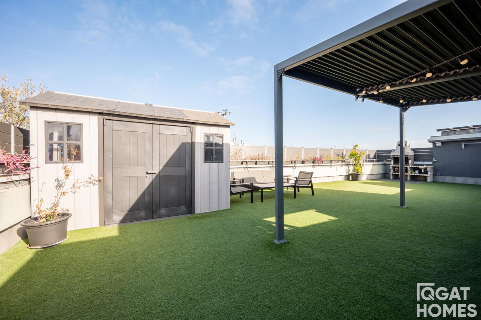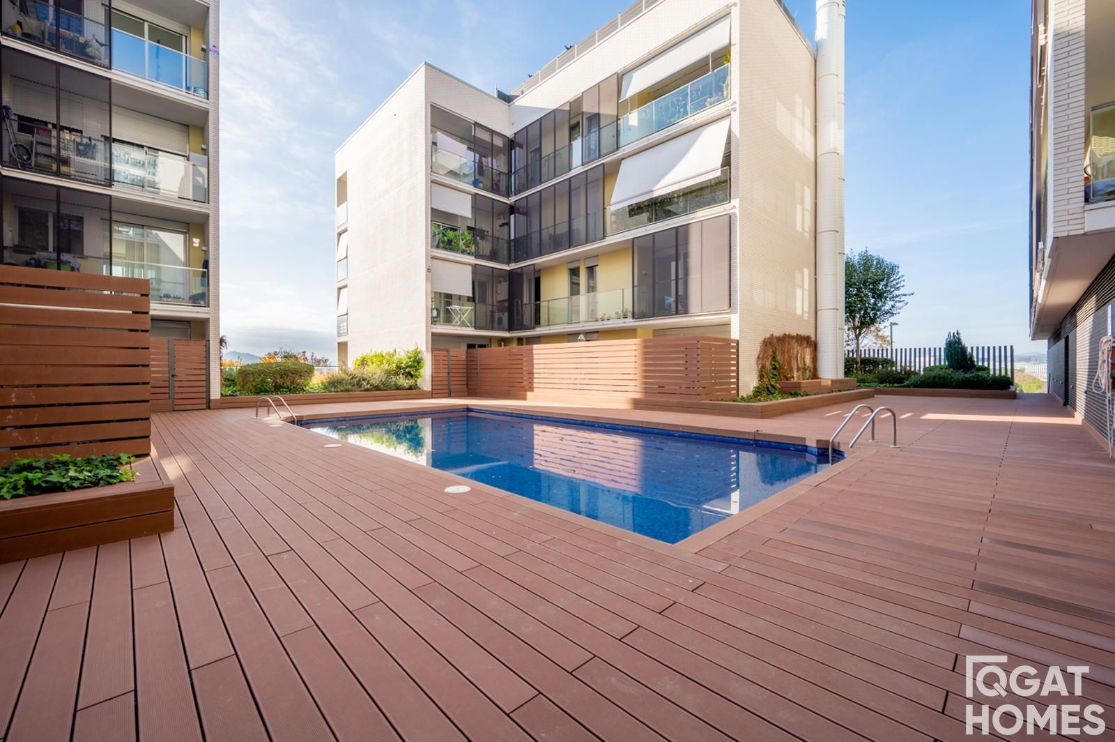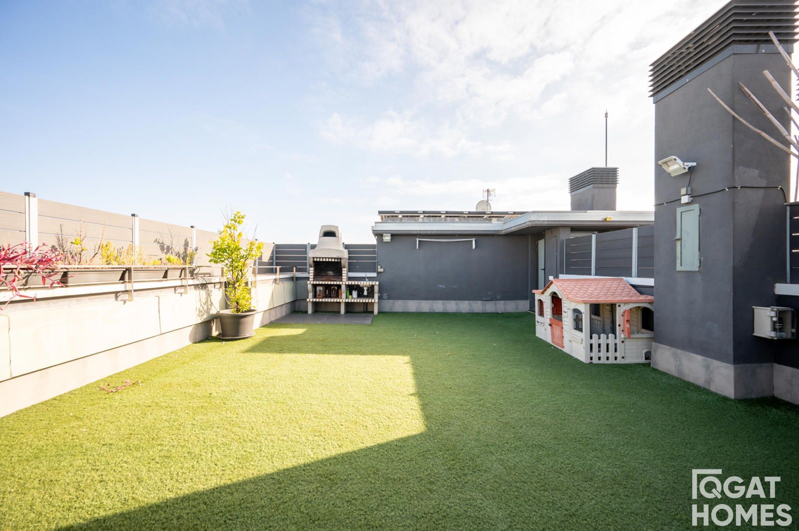 Qgat Homes presents a duplex penthouse in a modern building from 2018, with an excellent layout between living and sleeping areas and spacious outdoor spaces. The 123 m2 property comprises 3 bedrooms: a suite with shower and built-in wardrobe, and 2 medium-sized bedrooms, one of which also has a built-in wardrobe. It also has a second full bathroom with a bathtub. The living-dining room, with a bioethanol fireplace, opens onto two terraces, one of which overlooks the communal swimming pool. The separate kitchen has a dumbwaiter and a utility room (safareig) and connects to the terrace. Upstairs, there is a large private terrace of approximately 100m2 equipped with a pergola, a hot shower, and a storage shed, ideal as a chill-out area or solarium. Features include recessed electrical outlets, a Japanese toilet (integrating hygiene, comfort, and water-saving functions), automatic blinds, ducted hot/cold air conditioning, mosquito nets, and solar panels on the building. It includes two parking spaces and a storage room. The building has a communal saltwater pool. A floor plan with a proposed four-bedroom layout is included in the photo sequence. The property currently has three bedrooms, and the floor plan is shown for illustrative purposes only to assess the potential of the space. This modern, bright, and fully equipped home is available for viewing. Request a viewing. At Qgat Homes, we have the best real estate consultants for personalized service. Don't hesitate to contact us for more detailed information about this property and many others in the Sant Cugat del Vallès area.