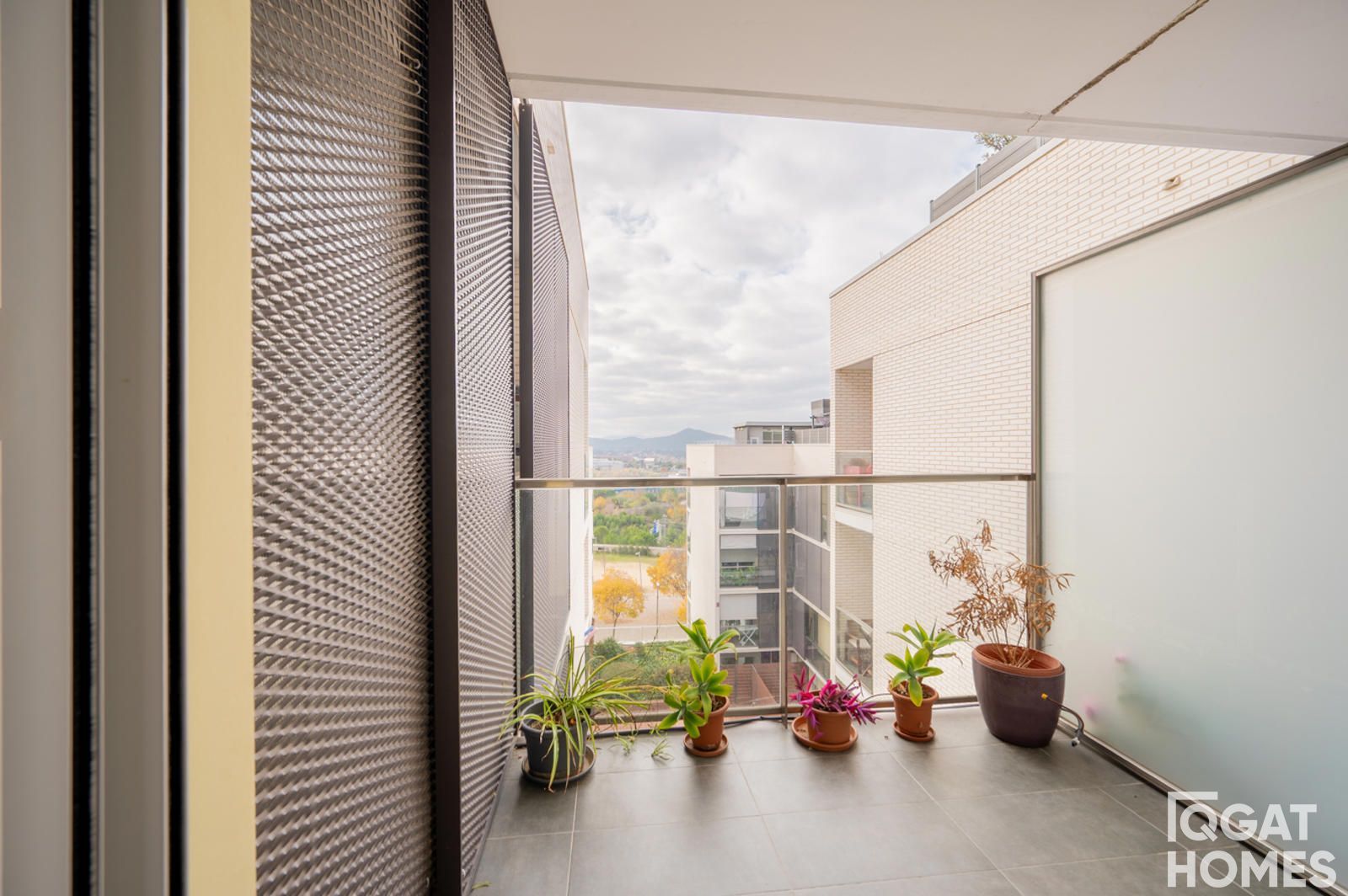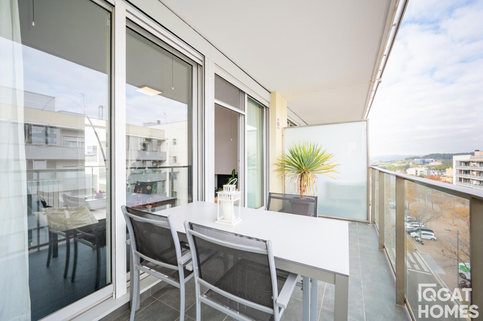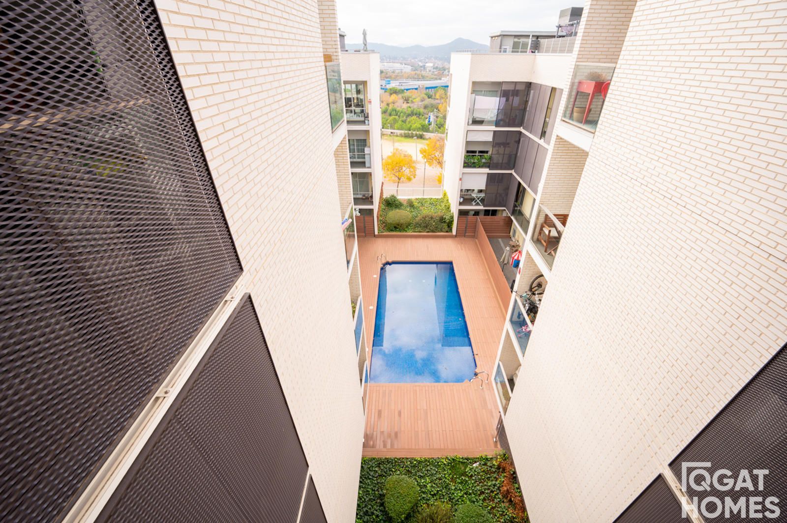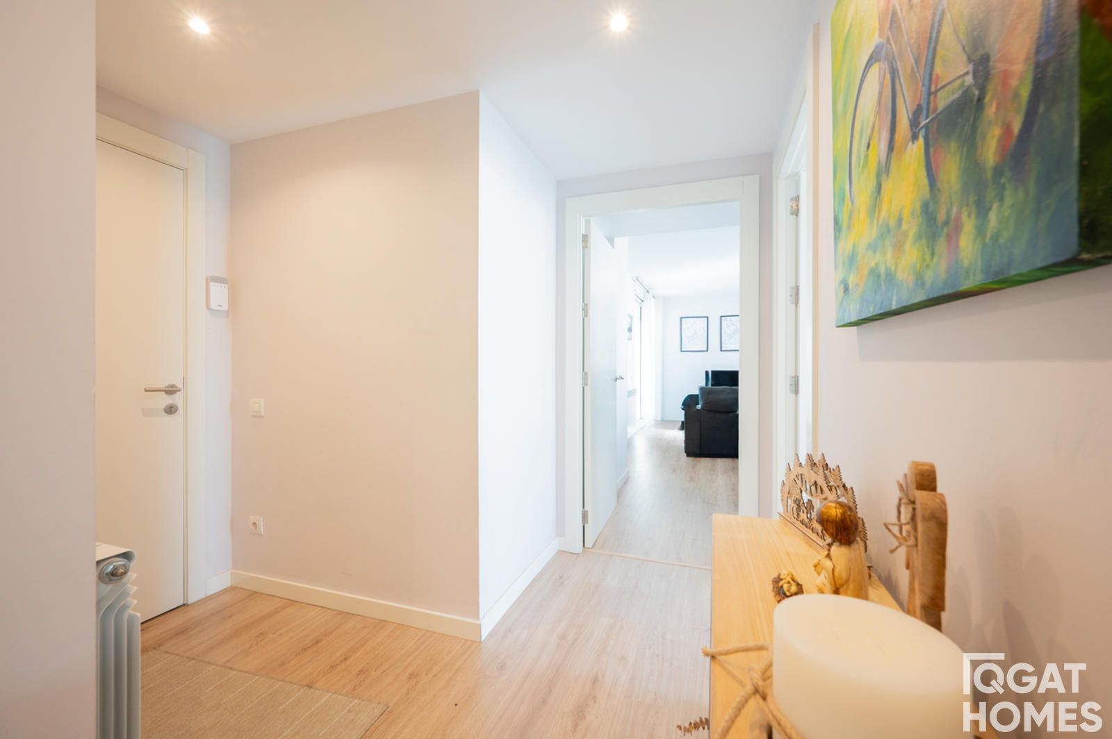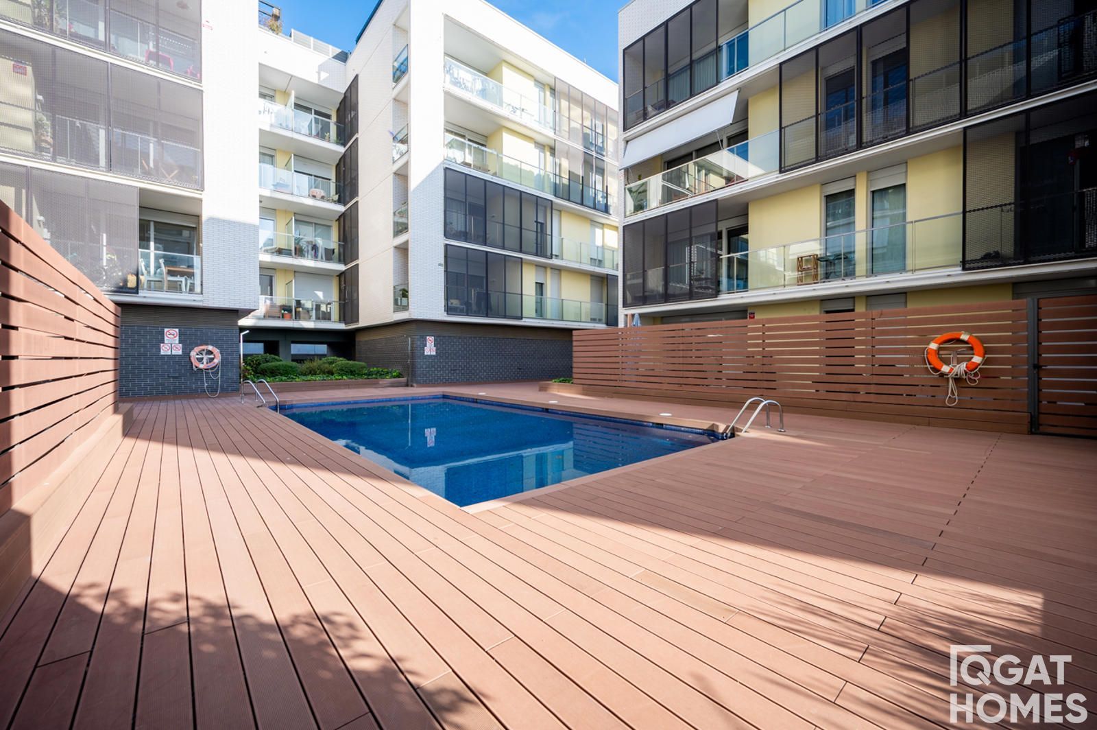 Qgat Homes presents a duplex penthouse in a modern building from 2018, with an excellent layout between living and sleeping areas and spacious outdoor spaces. The 123 m2 property comprises 3 bedrooms: a suite with shower and built-in wardrobe, and 2 medium-sized bedrooms, one of which also has a built-in wardrobe. It also has a second full bathroom with a bathtub. The living-dining room, with a bioethanol fireplace, opens onto two terraces, one of which overlooks the communal swimming pool. The separate kitchen has a dumbwaiter and a utility room (safareig) and connects to the terrace. Upstairs, there is a large private terrace of approximately 100m2 equipped with a pergola, a hot shower, and a storage shed, ideal as a chill-out area or solarium. Features include recessed electrical outlets, a Japanese toilet (integrating hygiene, comfort, and water-saving functions), automatic blinds, ducted hot/cold air conditioning, mosquito nets, and solar panels on the building. It includes two parking spaces and a storage room. The building has a communal saltwater pool. A floor plan with a proposed four-bedroom layout is included in the photo sequence. The property currently has three bedrooms, and the floor plan is shown for illustrative purposes only to assess the potential of the space. This modern, bright, and fully equipped home is available for viewing. Request a viewing. At Qgat Homes, we have the best real estate consultants for personalized service. Don't hesitate to contact us for more detailed information about this property and many others in the Sant Cugat del Vallès area.