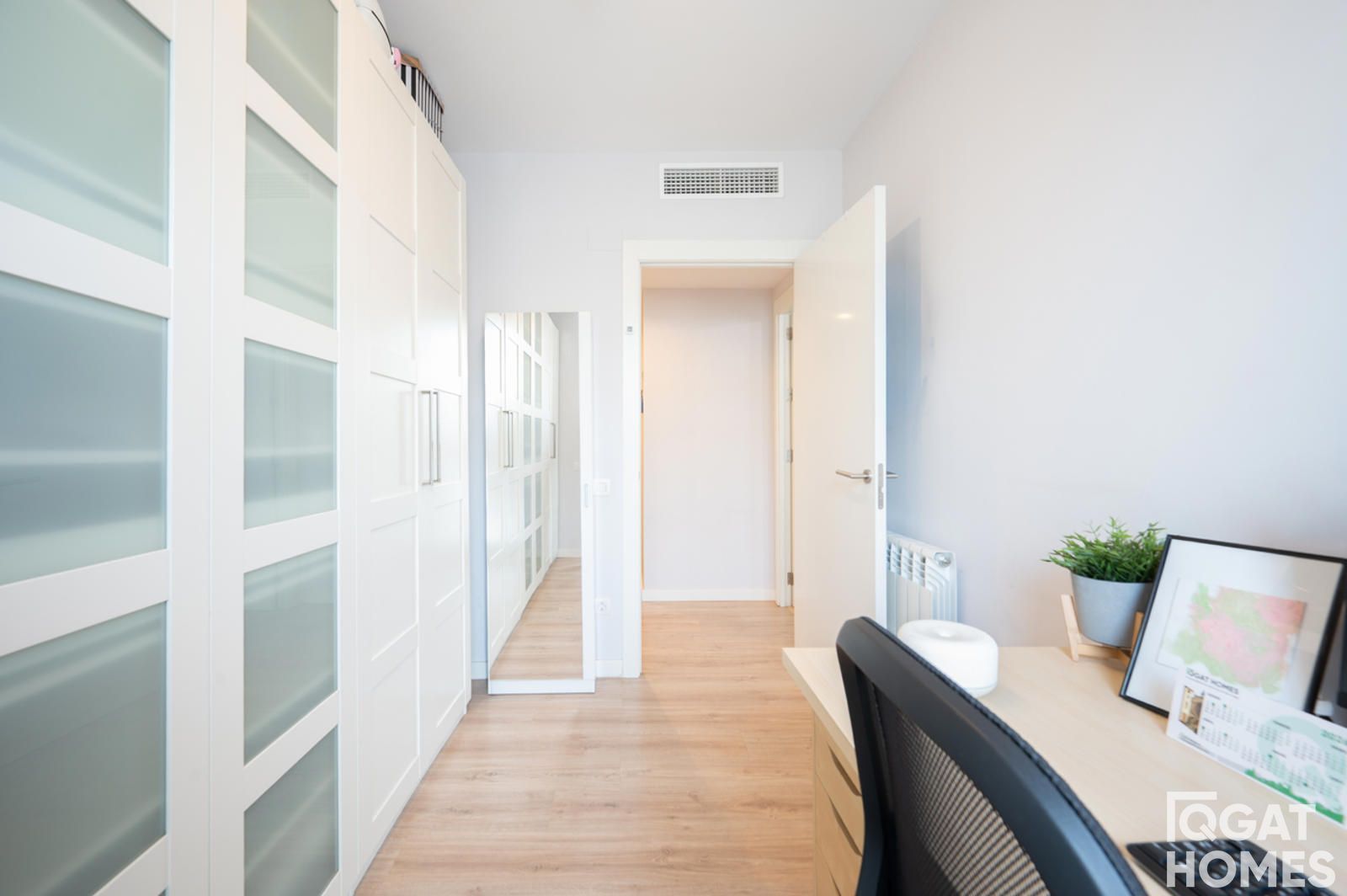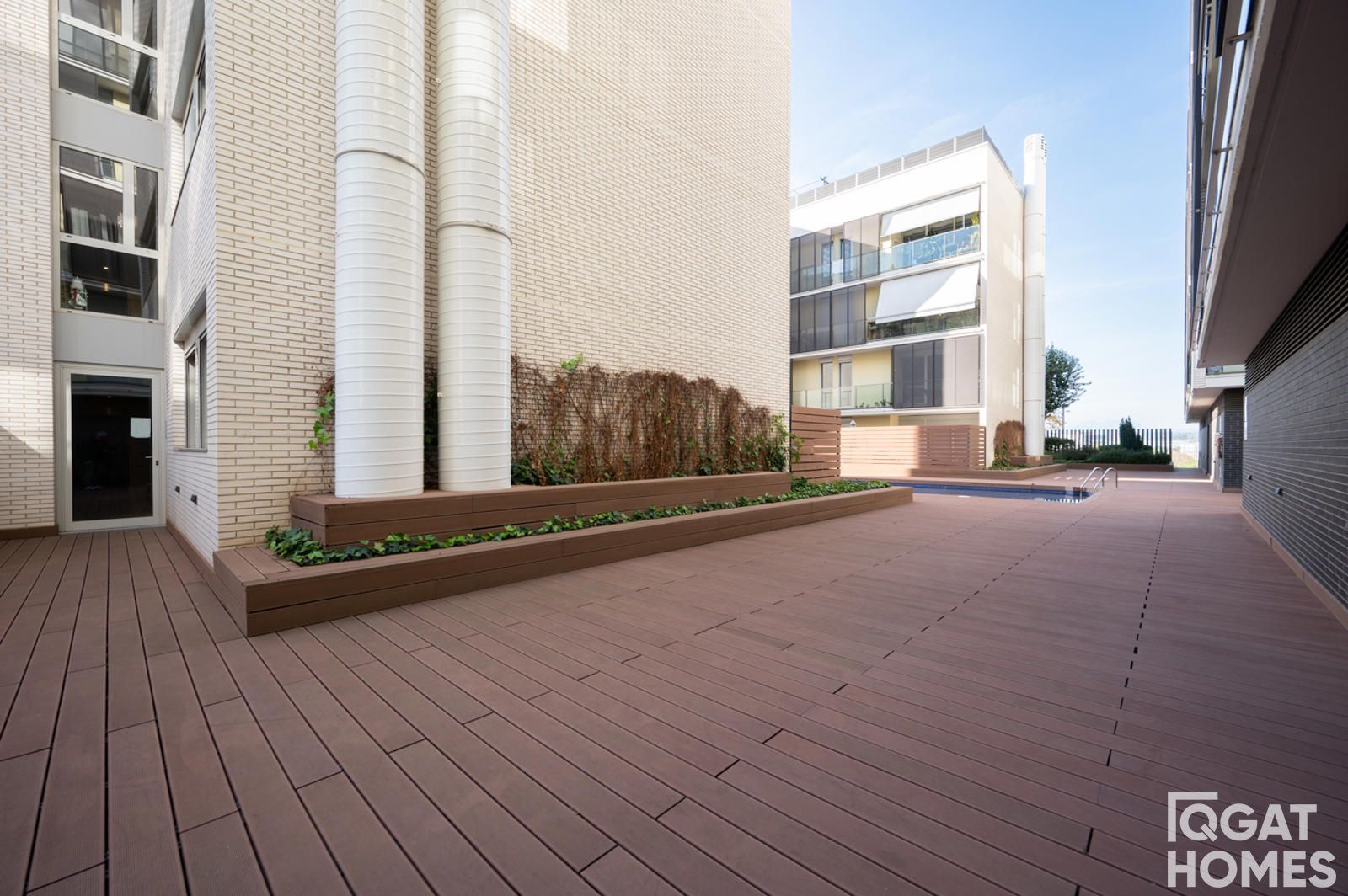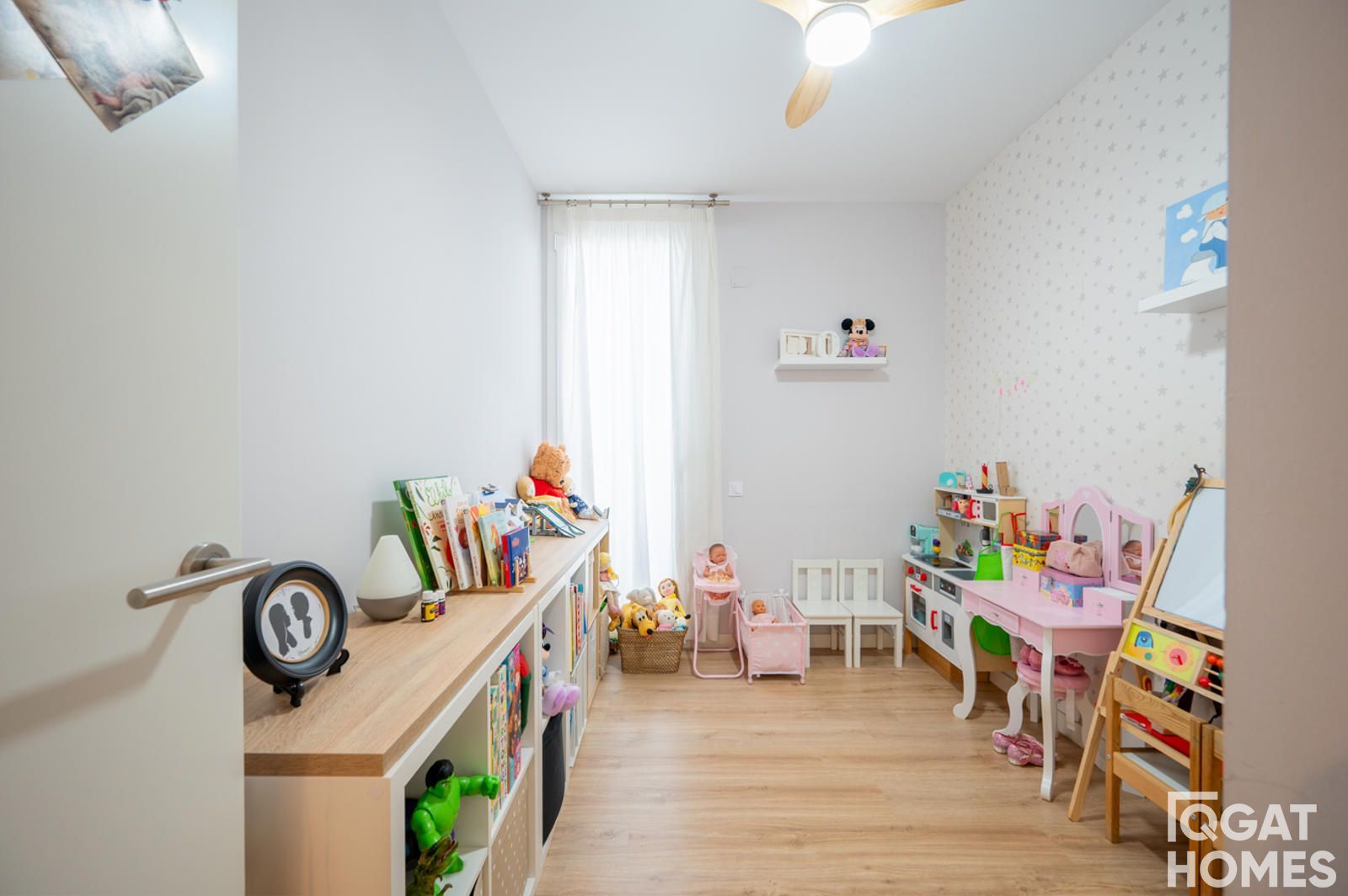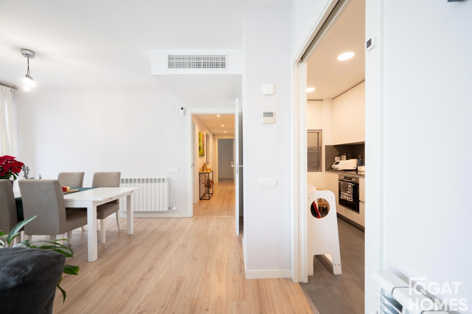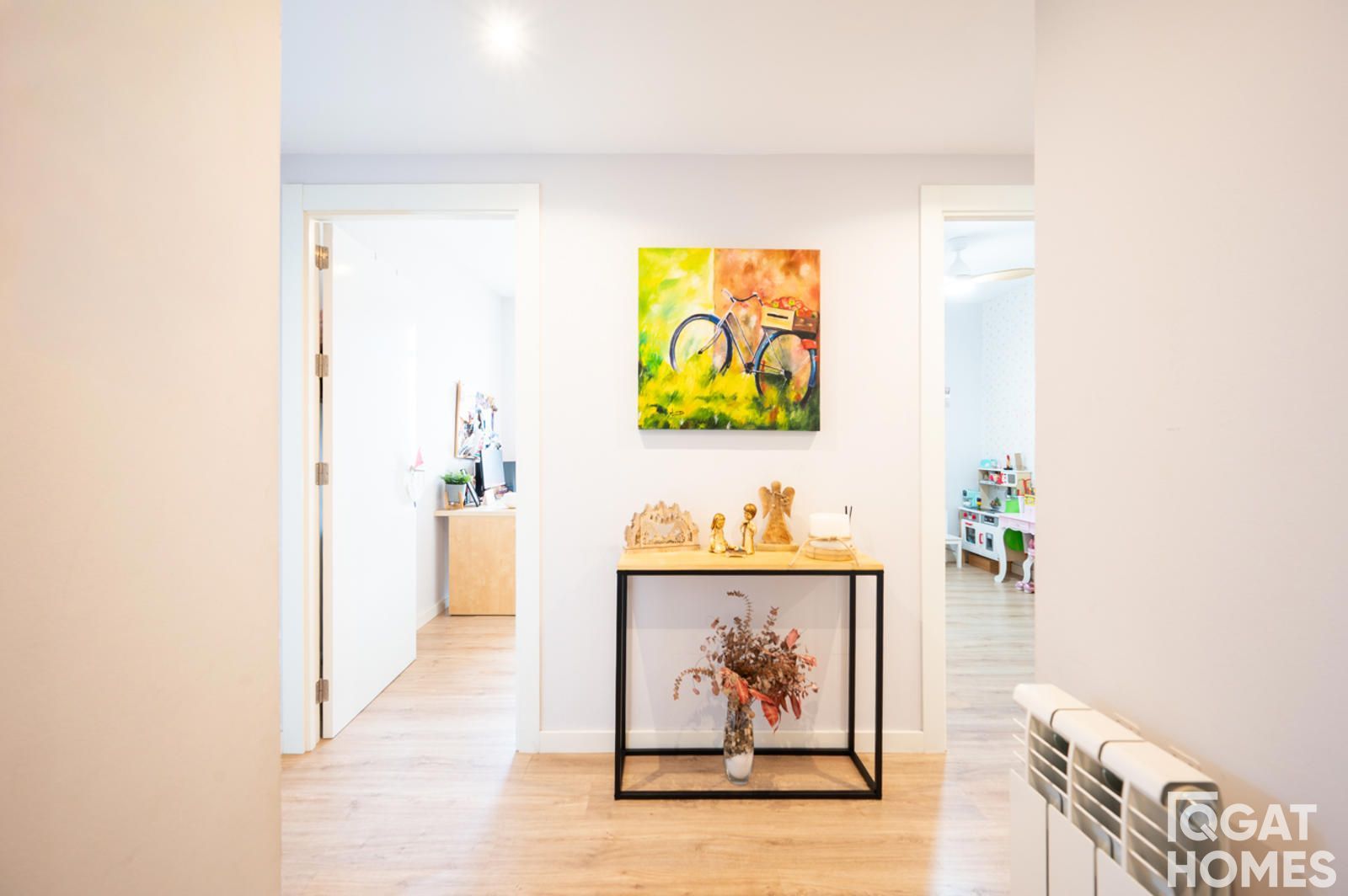 Qgat Homes presents a duplex penthouse in a modern building from 2018, with an excellent layout between living and sleeping areas and spacious outdoor spaces. The 123 m2 property comprises 3 bedrooms: a suite with shower and built-in wardrobe, and 2 medium-sized bedrooms, one of which also has a built-in wardrobe. It also has a second full bathroom with a bathtub. The living-dining room, with a bioethanol fireplace, opens onto two terraces, one of which overlooks the communal swimming pool. The separate kitchen has a dumbwaiter and a utility room (safareig) and connects to the terrace. Upstairs, there is a large private terrace of approximately 100m2 equipped with a pergola, a hot shower, and a storage shed, ideal as a chill-out area or solarium. Features include recessed electrical outlets, a Japanese toilet (integrating hygiene, comfort, and water-saving functions), automatic blinds, ducted hot/cold air conditioning, mosquito nets, and solar panels on the building. It includes two parking spaces and a storage room. The building has a communal saltwater pool. A floor plan with a proposed four-bedroom layout is included in the photo sequence. The property currently has three bedrooms, and the floor plan is shown for illustrative purposes only to assess the potential of the space. This modern, bright, and fully equipped home is available for viewing. Request a viewing. At Qgat Homes, we have the best real estate consultants for personalized service. Don't hesitate to contact us for more detailed information about this property and many others in the Sant Cugat del Vallès area.