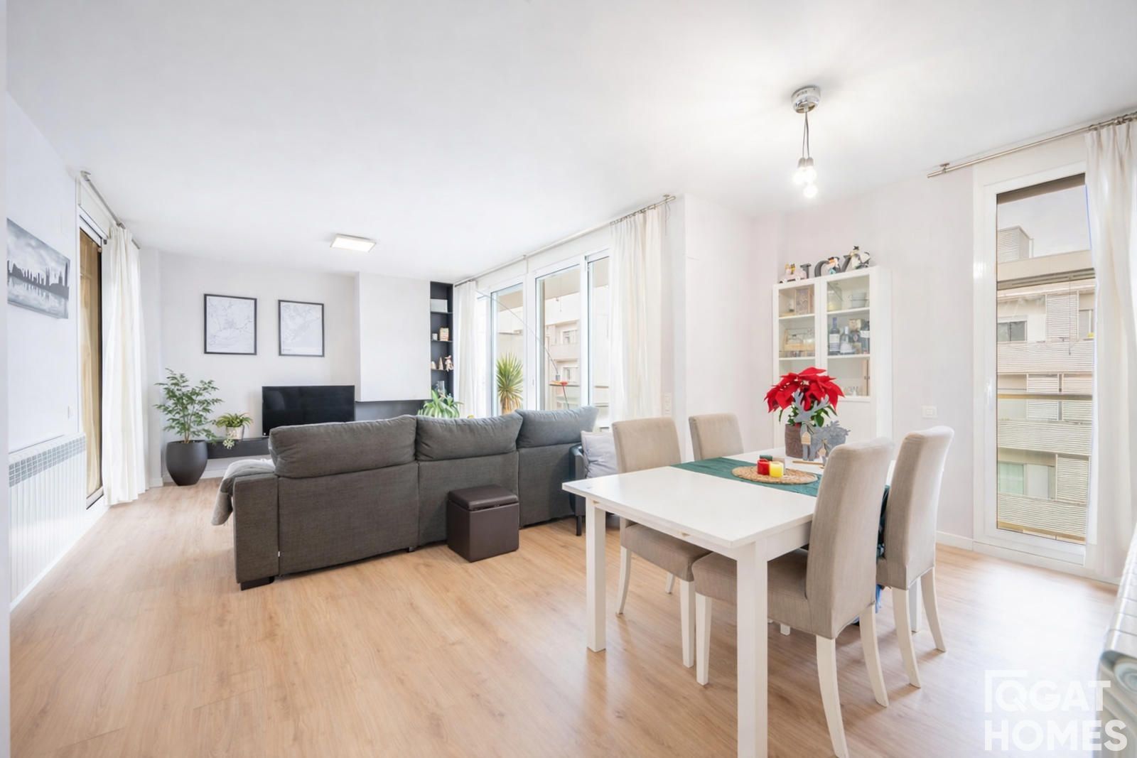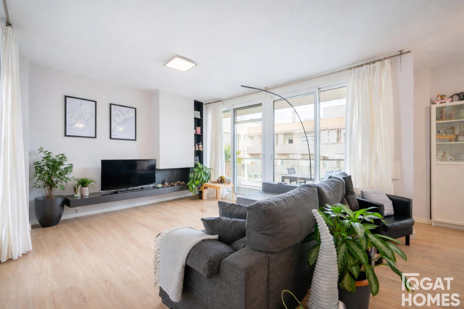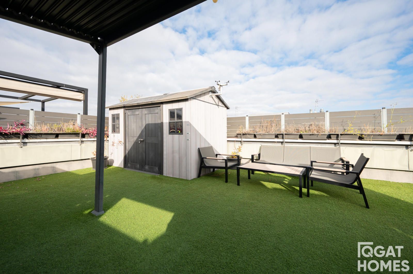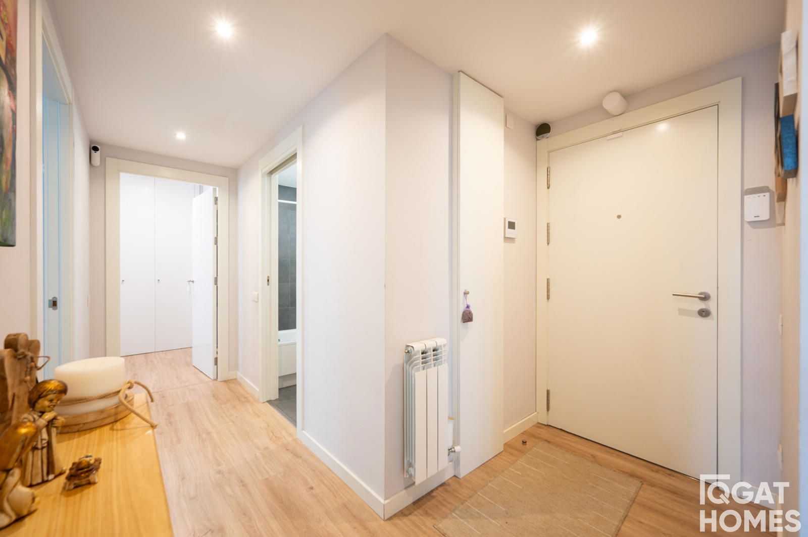 Qgat Homes presents a duplex penthouse in a modern building from 2018, with an excellent layout between living and sleeping areas and spacious outdoor spaces. The 123 m2 property comprises 3 bedrooms: a suite with shower and built-in wardrobe, and 2 medium-sized bedrooms, one of which also has a built-in wardrobe. It also has a second full bathroom with a bathtub. The living-dining room, with a bioethanol fireplace, opens onto two terraces, one of which overlooks the communal swimming pool. The separate kitchen has a dumbwaiter and a utility room (safareig) and connects to the terrace. Upstairs, there is a large private terrace of approximately 100m2 equipped with a pergola, a hot shower, and a storage shed, ideal as a chill-out area or solarium. Features include recessed electrical outlets, a Japanese toilet (integrating hygiene, comfort, and water-saving functions), automatic blinds, ducted hot/cold air conditioning, mosquito nets, and solar panels on the building. It includes two parking spaces and a storage room. The building has a communal saltwater pool. A floor plan with a proposed four-bedroom layout is included in the photo sequence. The property currently has three bedrooms, and the floor plan is shown for illustrative purposes only to assess the potential of the space. This modern, bright, and fully equipped home is available for viewing. Request a viewing. At Qgat Homes, we have the best real estate consultants for personalized service. Don't hesitate to contact us for more detailed information about this property and many others in the Sant Cugat del Vallès area.