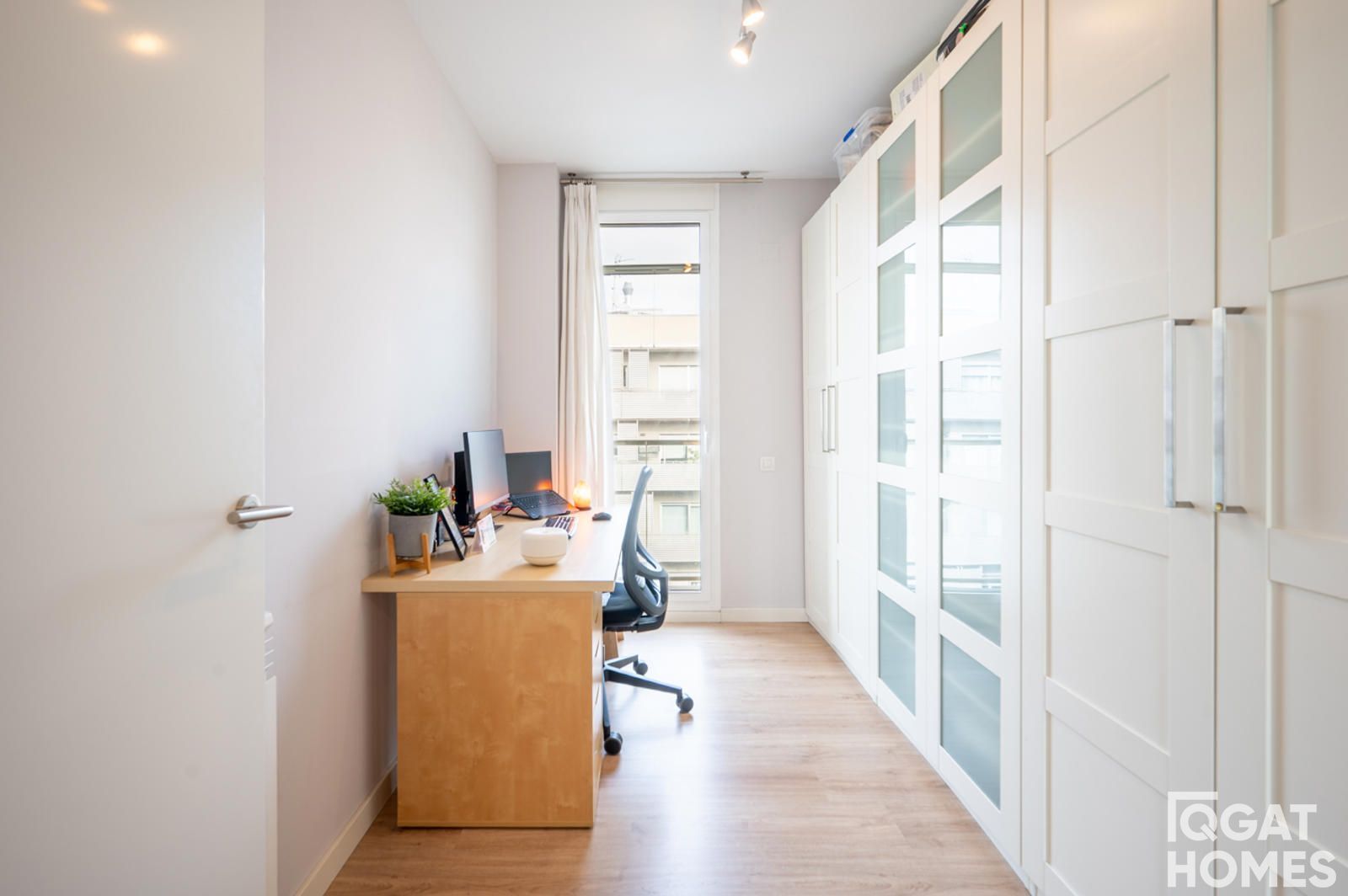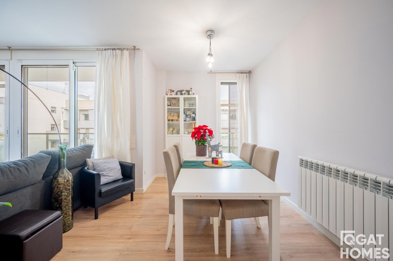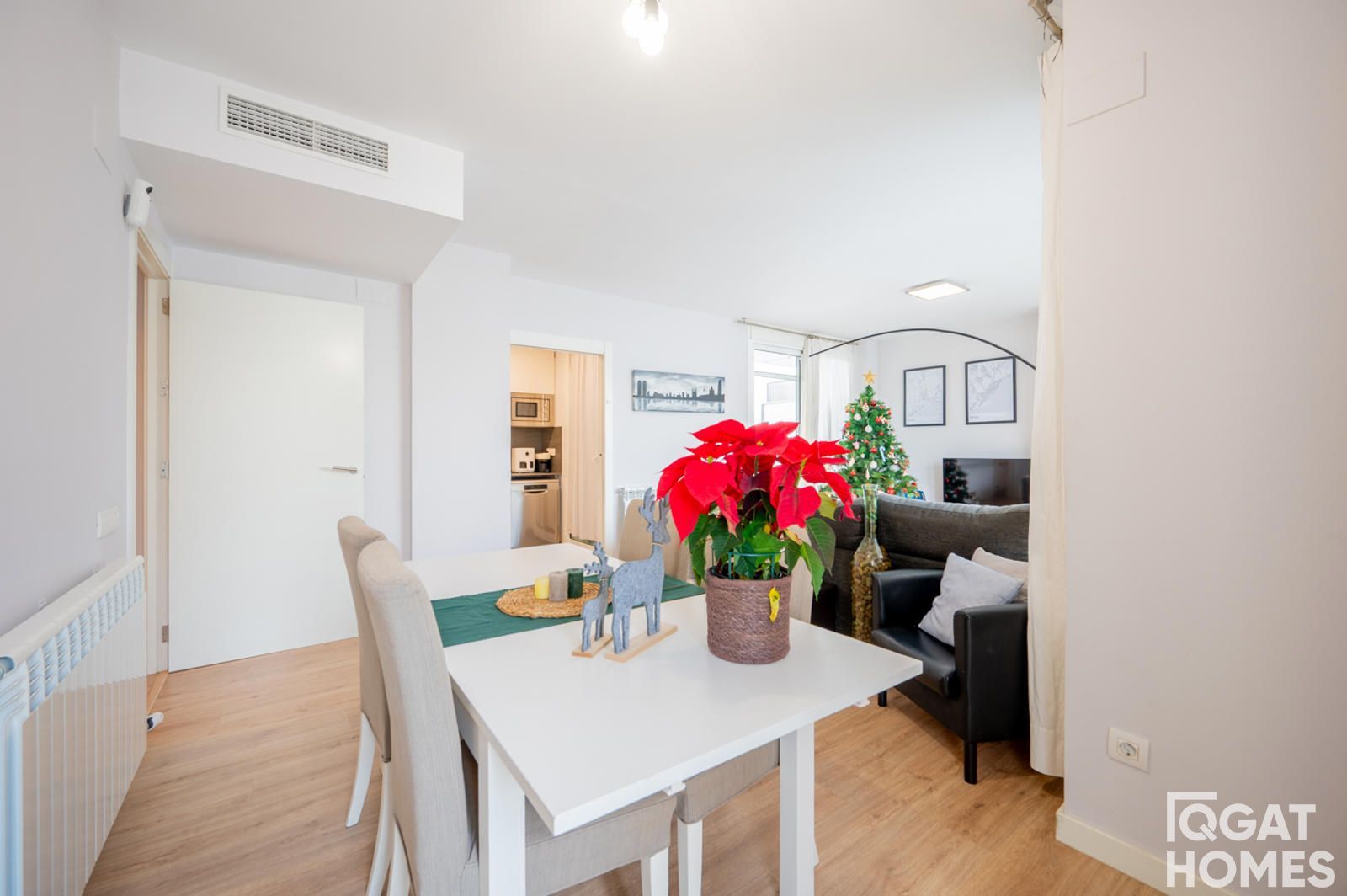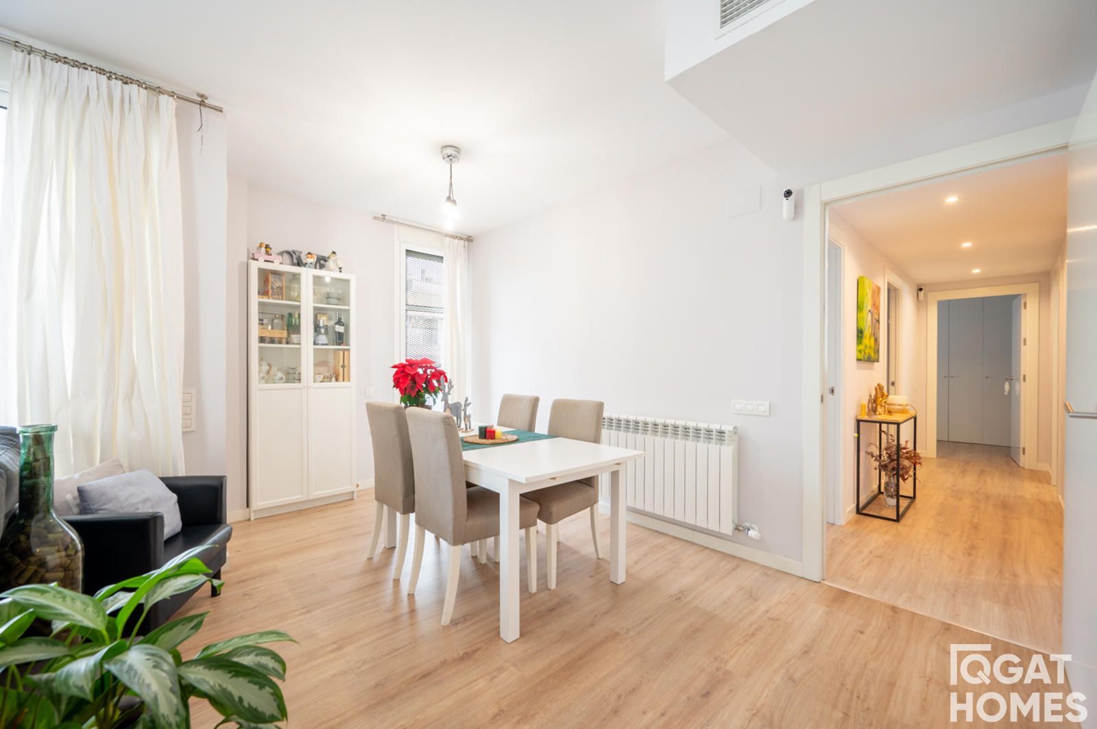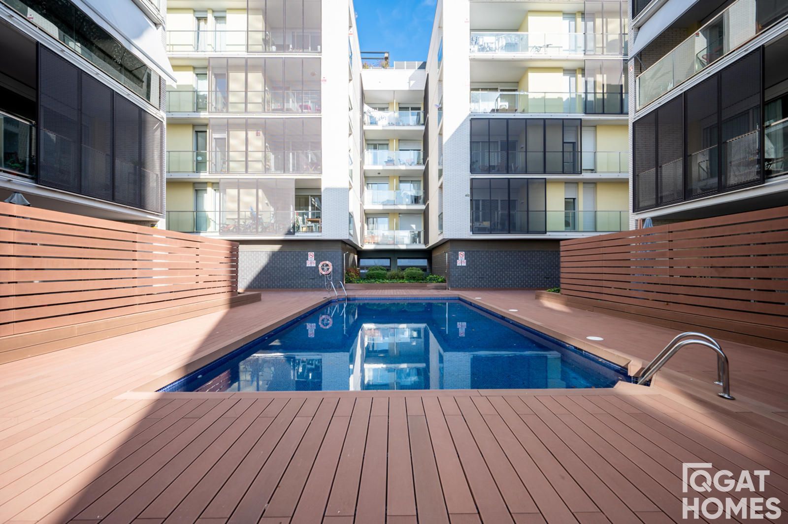 Qgat Homes presents a duplex penthouse in a modern building from 2018, with an excellent layout between living and sleeping areas and spacious outdoor spaces. The 123 m2 property comprises 3 bedrooms: a suite with shower and built-in wardrobe, and 2 medium-sized bedrooms, one of which also has a built-in wardrobe. It also has a second full bathroom with a bathtub. The living-dining room, with a bioethanol fireplace, opens onto two terraces, one of which overlooks the communal swimming pool. The separate kitchen has a dumbwaiter and a utility room (safareig) and connects to the terrace. Upstairs, there is a large private terrace of approximately 100m2 equipped with a pergola, a hot shower, and a storage shed, ideal as a chill-out area or solarium. Features include recessed electrical outlets, a Japanese toilet (integrating hygiene, comfort, and water-saving functions), automatic blinds, ducted hot/cold air conditioning, mosquito nets, and solar panels on the building. It includes two parking spaces and a storage room. The building has a communal saltwater pool. A floor plan with a proposed four-bedroom layout is included in the photo sequence. The property currently has three bedrooms, and the floor plan is shown for illustrative purposes only to assess the potential of the space. This modern, bright, and fully equipped home is available for viewing. Request a viewing. At Qgat Homes, we have the best real estate consultants for personalized service. Don't hesitate to contact us for more detailed information about this property and many others in the Sant Cugat del Vallès area.