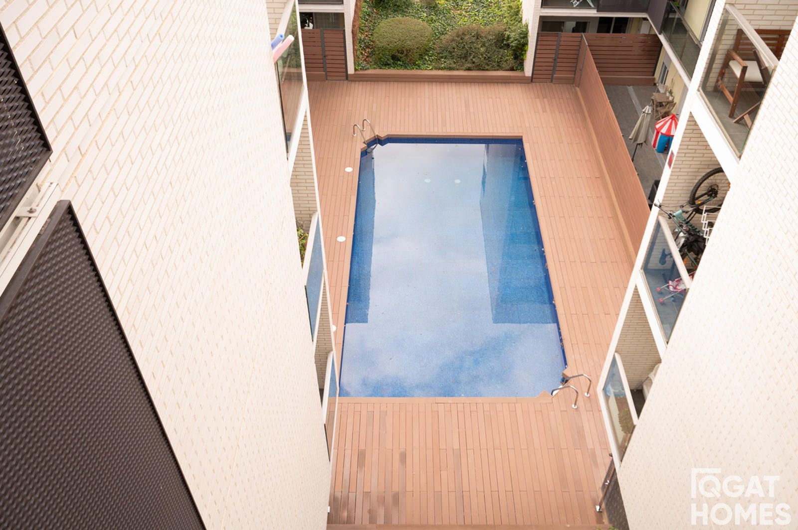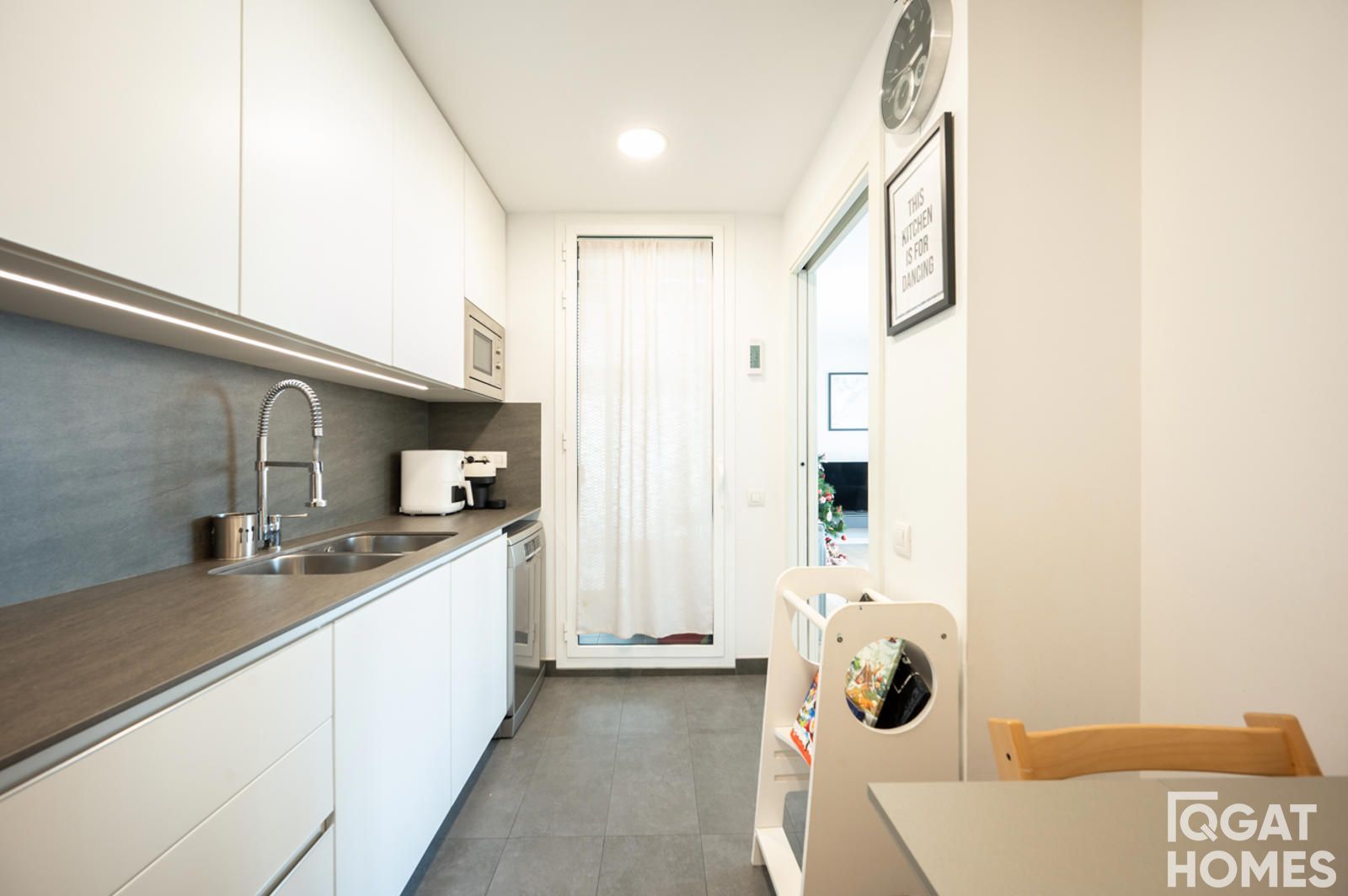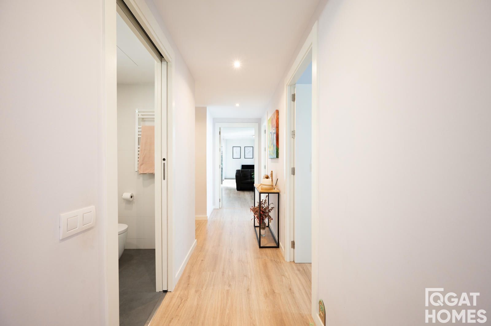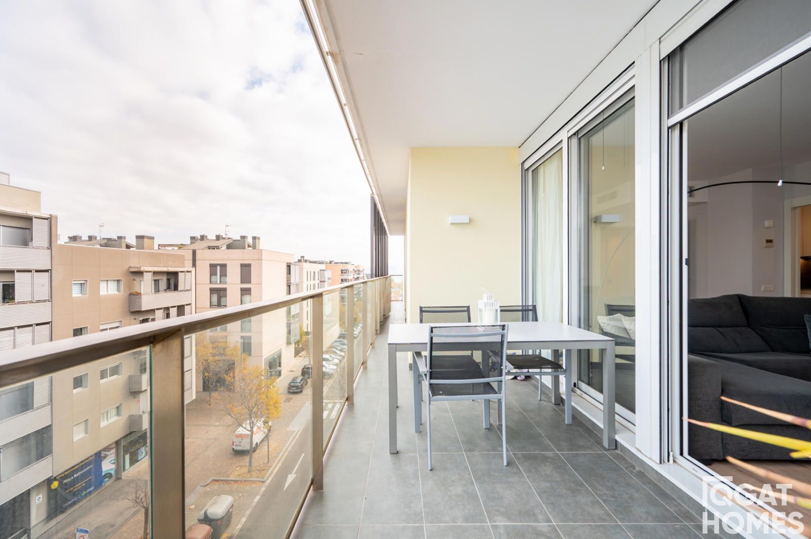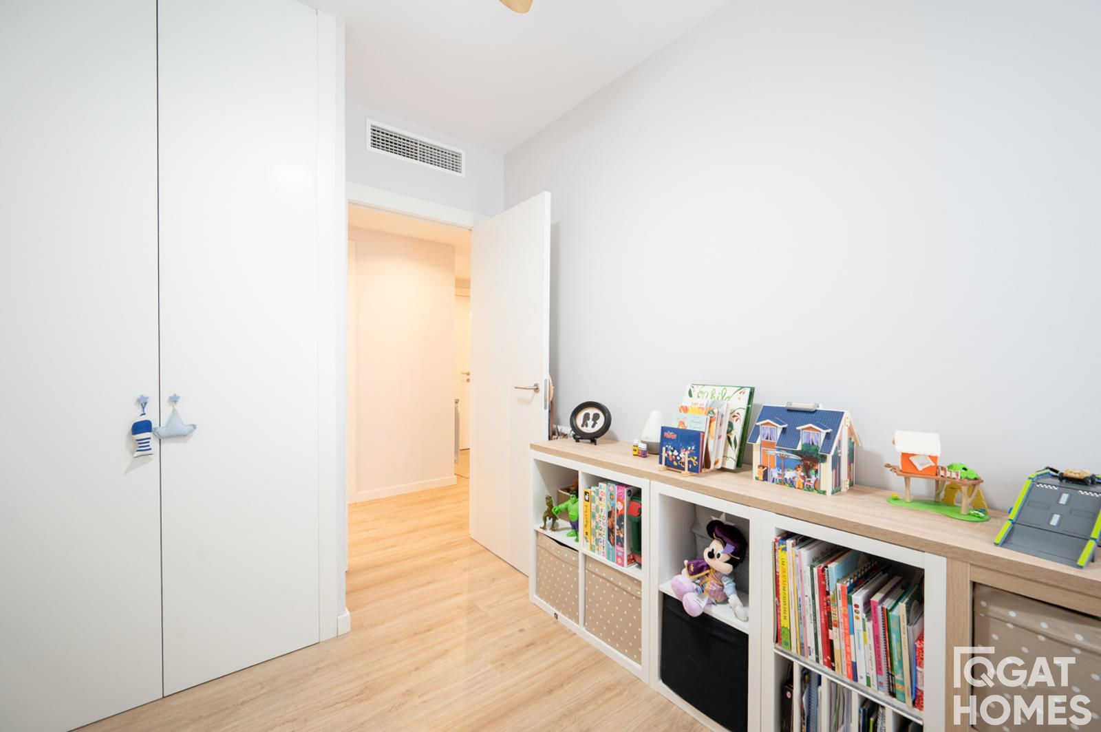 Qgat Homes presents a duplex penthouse in a modern building from 2018, with an excellent layout between living and sleeping areas and spacious outdoor spaces. The 123 m2 property comprises 3 bedrooms: a suite with shower and built-in wardrobe, and 2 medium-sized bedrooms, one of which also has a built-in wardrobe. It also has a second full bathroom with a bathtub. The living-dining room, with a bioethanol fireplace, opens onto two terraces, one of which overlooks the communal swimming pool. The separate kitchen has a dumbwaiter and a utility room (safareig) and connects to the terrace. Upstairs, there is a large private terrace of approximately 100m2 equipped with a pergola, a hot shower, and a storage shed, ideal as a chill-out area or solarium. Features include recessed electrical outlets, a Japanese toilet (integrating hygiene, comfort, and water-saving functions), automatic blinds, ducted hot/cold air conditioning, mosquito nets, and solar panels on the building. It includes two parking spaces and a storage room. The building has a communal saltwater pool. A floor plan with a proposed four-bedroom layout is included in the photo sequence. The property currently has three bedrooms, and the floor plan is shown for illustrative purposes only to assess the potential of the space. This modern, bright, and fully equipped home is available for viewing. Request a viewing. At Qgat Homes, we have the best real estate consultants for personalized service. Don't hesitate to contact us for more detailed information about this property and many others in the Sant Cugat del Vallès area.
