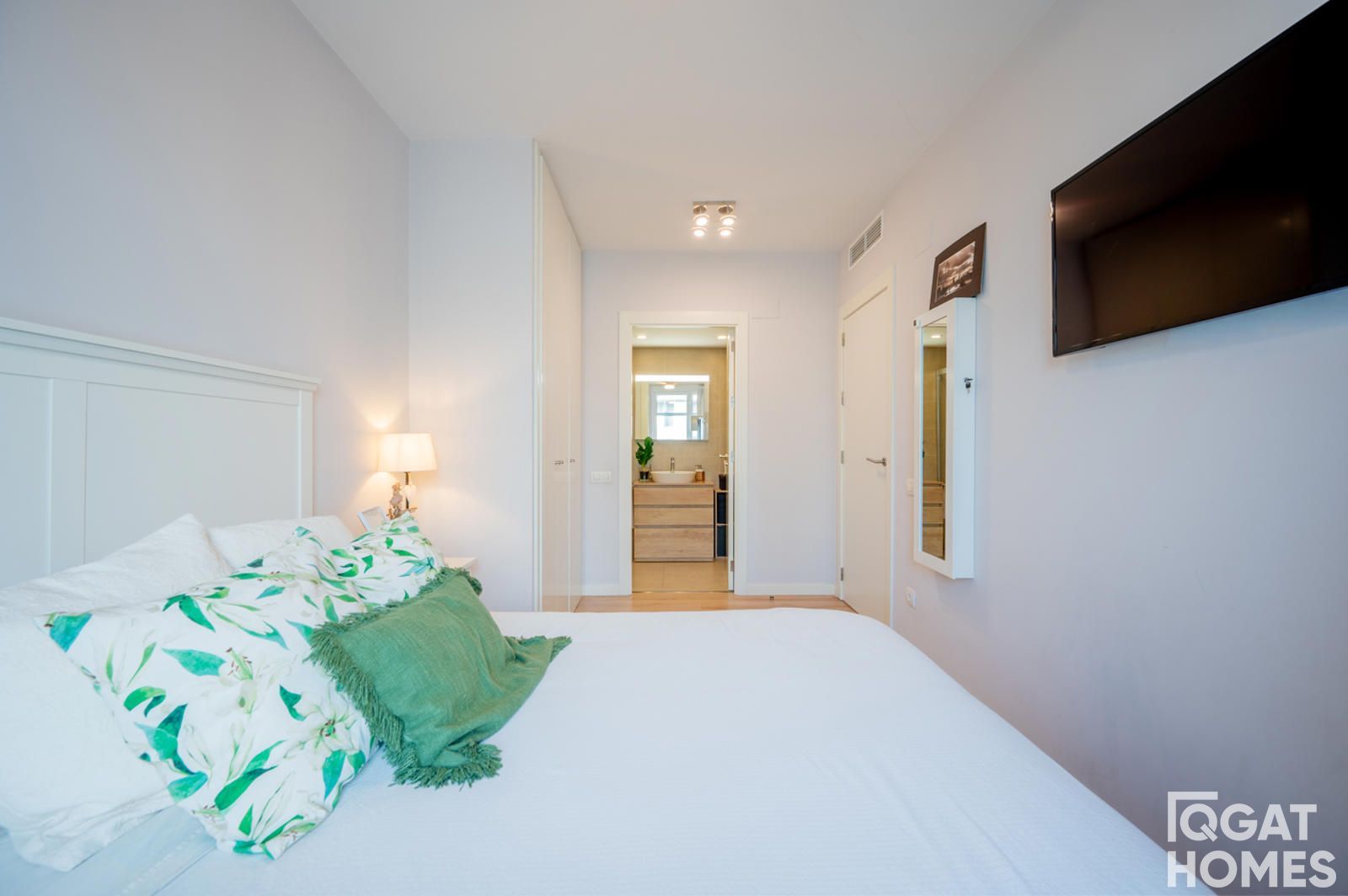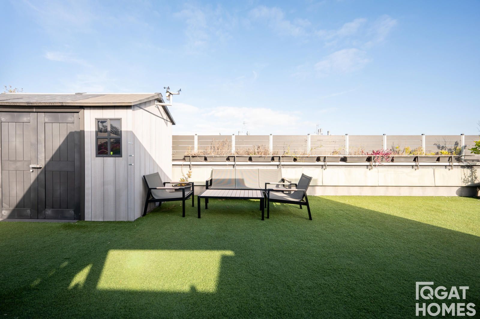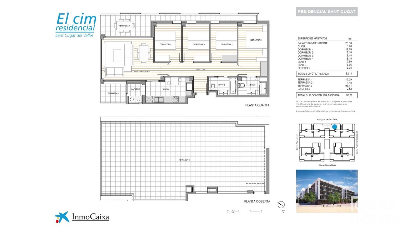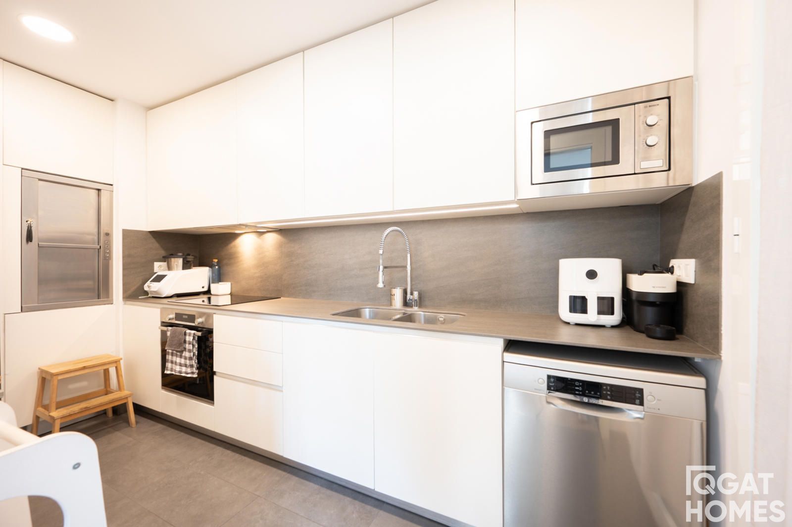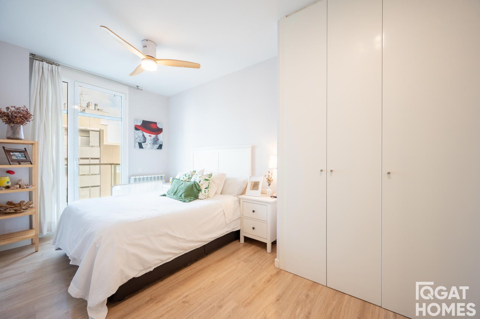 Qgat Homes presents a duplex penthouse in a modern building from 2018, with an excellent layout between living and sleeping areas and spacious outdoor spaces. The 123 m2 property comprises 3 bedrooms: a suite with shower and built-in wardrobe, and 2 medium-sized bedrooms, one of which also has a built-in wardrobe. It also has a second full bathroom with a bathtub. The living-dining room, with a bioethanol fireplace, opens onto two terraces, one of which overlooks the communal swimming pool. The separate kitchen has a dumbwaiter and a utility room (safareig) and connects to the terrace. Upstairs, there is a large private terrace of approximately 100m2 equipped with a pergola, a hot shower, and a storage shed, ideal as a chill-out area or solarium. Features include recessed electrical outlets, a Japanese toilet (integrating hygiene, comfort, and water-saving functions), automatic blinds, ducted hot/cold air conditioning, mosquito nets, and solar panels on the building. It includes two parking spaces and a storage room. The building has a communal saltwater pool. A floor plan with a proposed four-bedroom layout is included in the photo sequence. The property currently has three bedrooms, and the floor plan is shown for illustrative purposes only to assess the potential of the space. This modern, bright, and fully equipped home is available for viewing. Request a viewing. At Qgat Homes, we have the best real estate consultants for personalized service. Don't hesitate to contact us for more detailed information about this property and many others in the Sant Cugat del Vallès area.