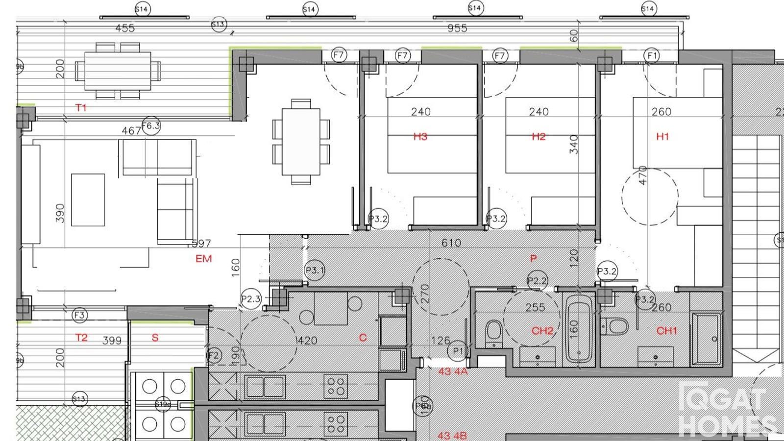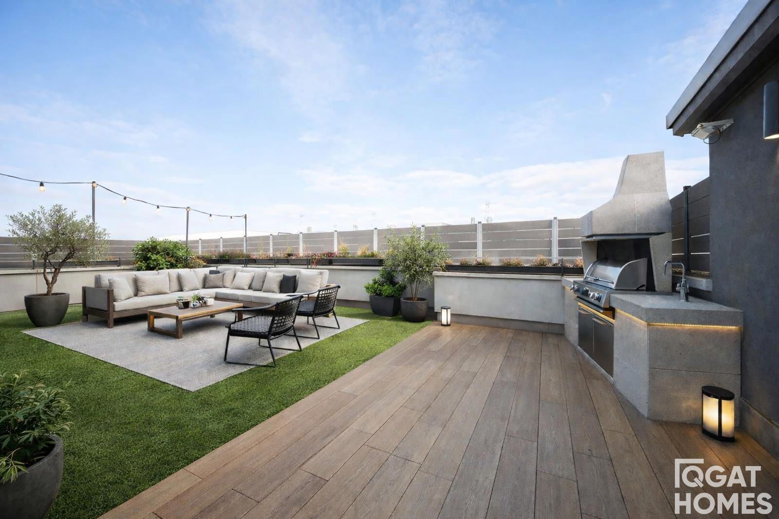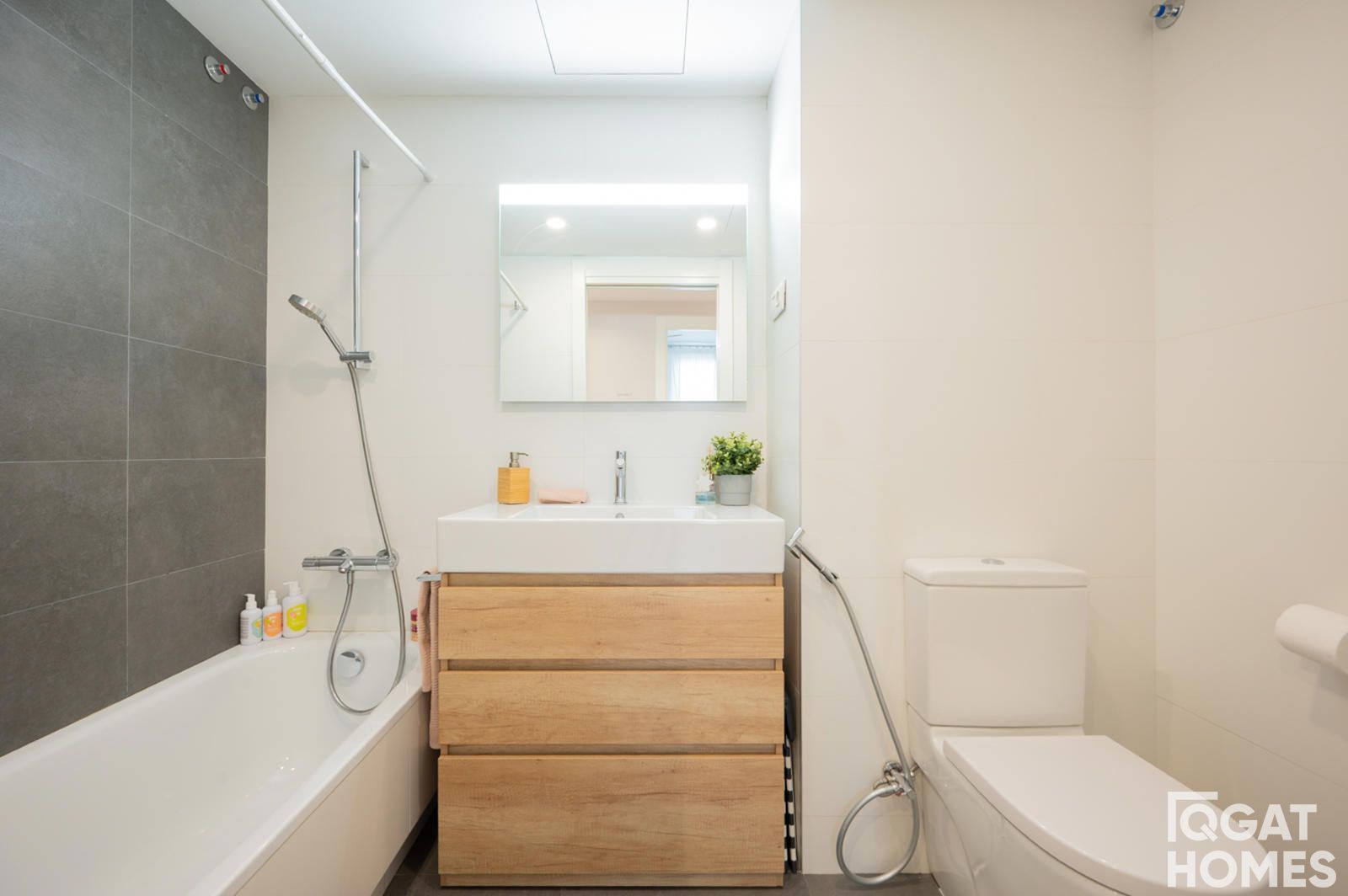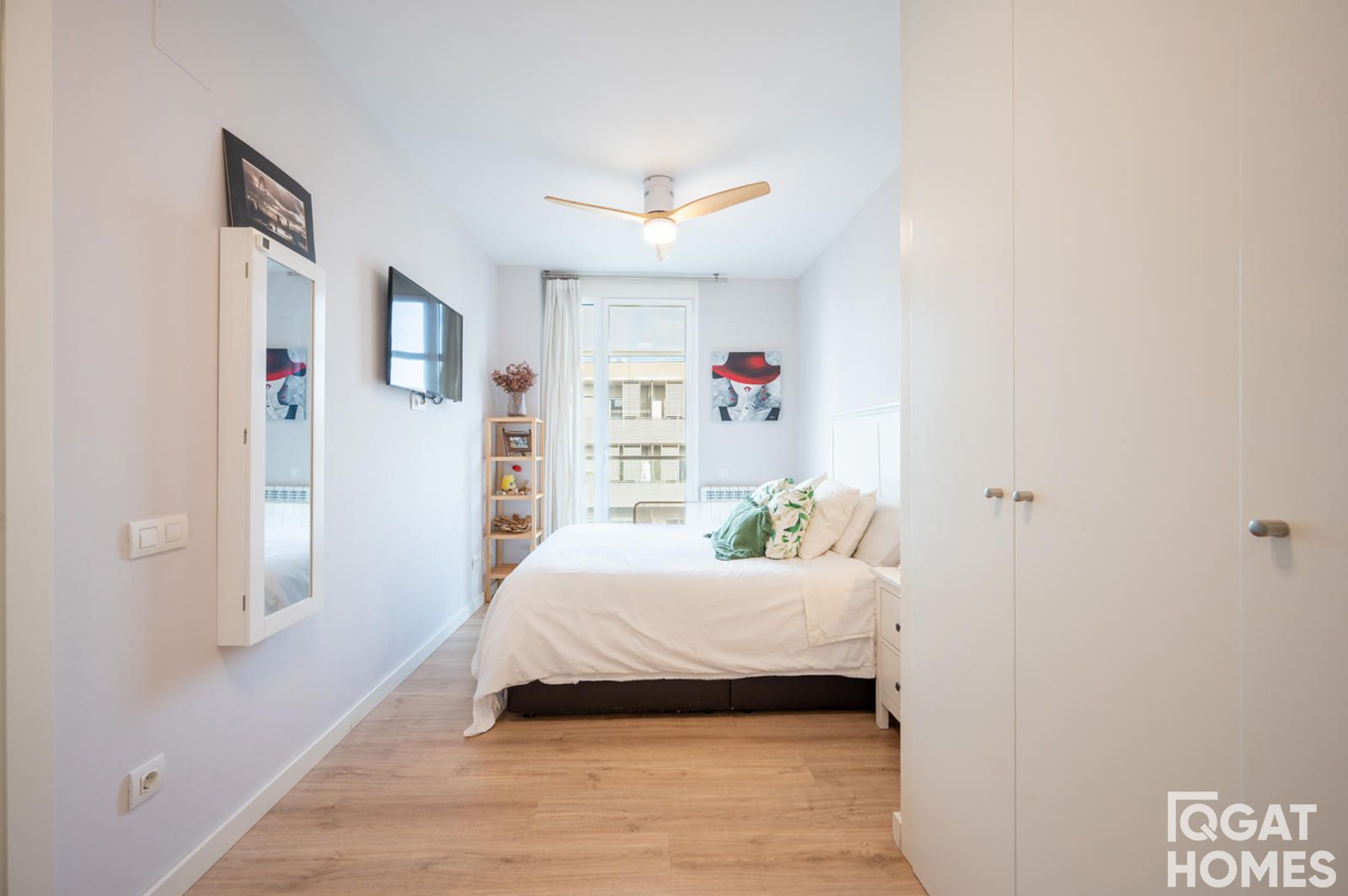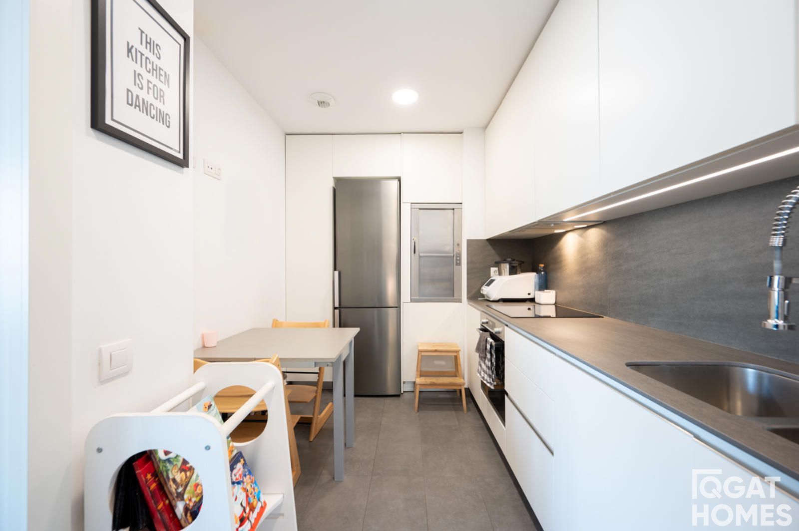 Qgat Homes presents a duplex penthouse in a modern building from 2018, with an excellent layout between living and sleeping areas and spacious outdoor spaces. The 123 m2 property comprises 3 bedrooms: a suite with shower and built-in wardrobe, and 2 medium-sized bedrooms, one of which also has a built-in wardrobe. It also has a second full bathroom with a bathtub. The living-dining room, with a bioethanol fireplace, opens onto two terraces, one of which overlooks the communal swimming pool. The separate kitchen has a dumbwaiter and a utility room (safareig) and connects to the terrace. Upstairs, there is a large private terrace of approximately 100m2 equipped with a pergola, a hot shower, and a storage shed, ideal as a chill-out area or solarium. Features include recessed electrical outlets, a Japanese toilet (integrating hygiene, comfort, and water-saving functions), automatic blinds, ducted hot/cold air conditioning, mosquito nets, and solar panels on the building. It includes two parking spaces and a storage room. The building has a communal saltwater pool. A floor plan with a proposed four-bedroom layout is included in the photo sequence. The property currently has three bedrooms, and the floor plan is shown for illustrative purposes only to assess the potential of the space. This modern, bright, and fully equipped home is available for viewing. Request a viewing. At Qgat Homes, we have the best real estate consultants for personalized service. Don't hesitate to contact us for more detailed information about this property and many others in the Sant Cugat del Vallès area.