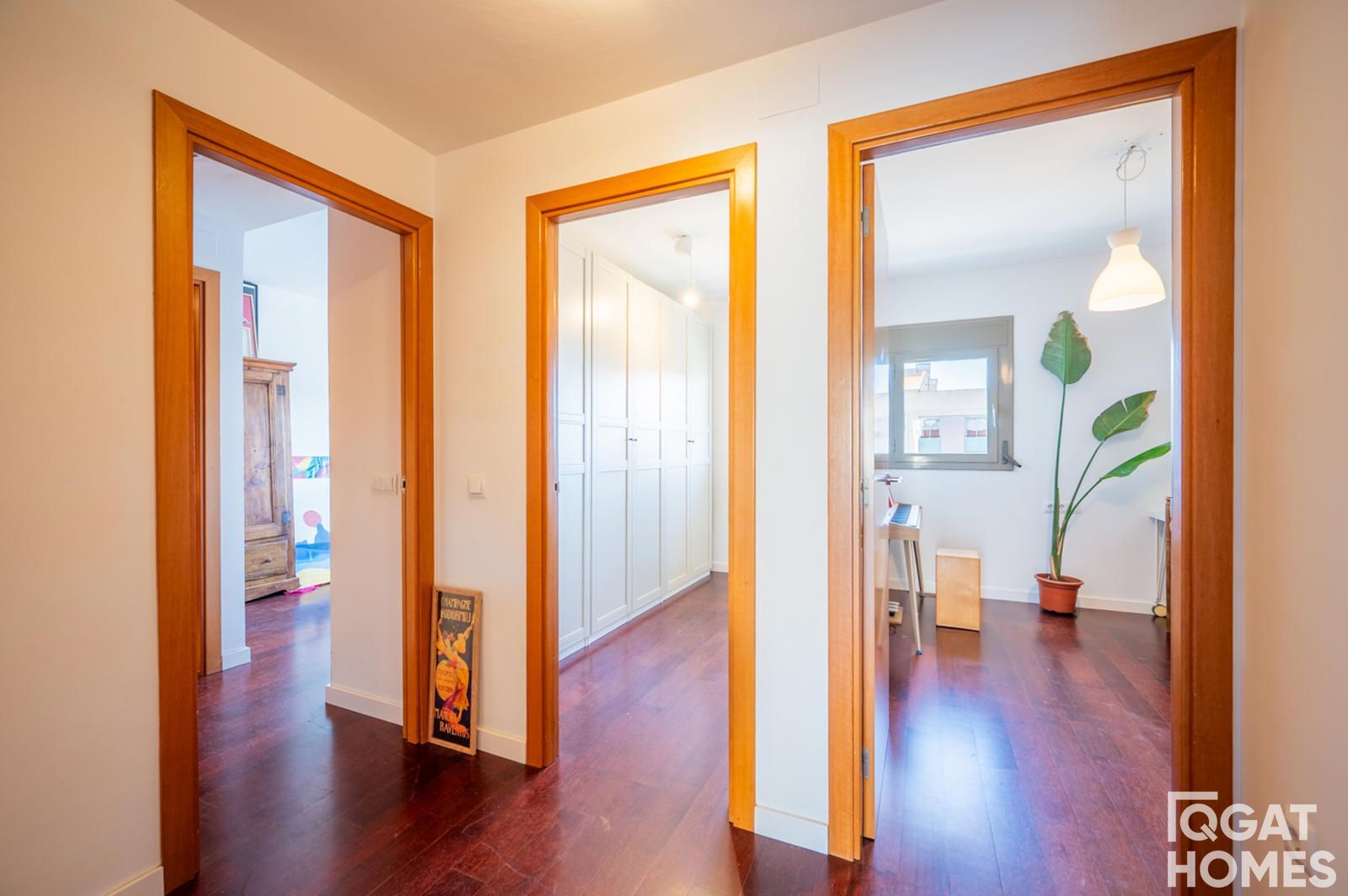 La vivienda dispone de 111 m² construidos con una terraza de 10 m², se encuentra en tercera y última planta y cuenta con doble orientación este–oeste, lo que garantiza luminosidad durante todo el día.