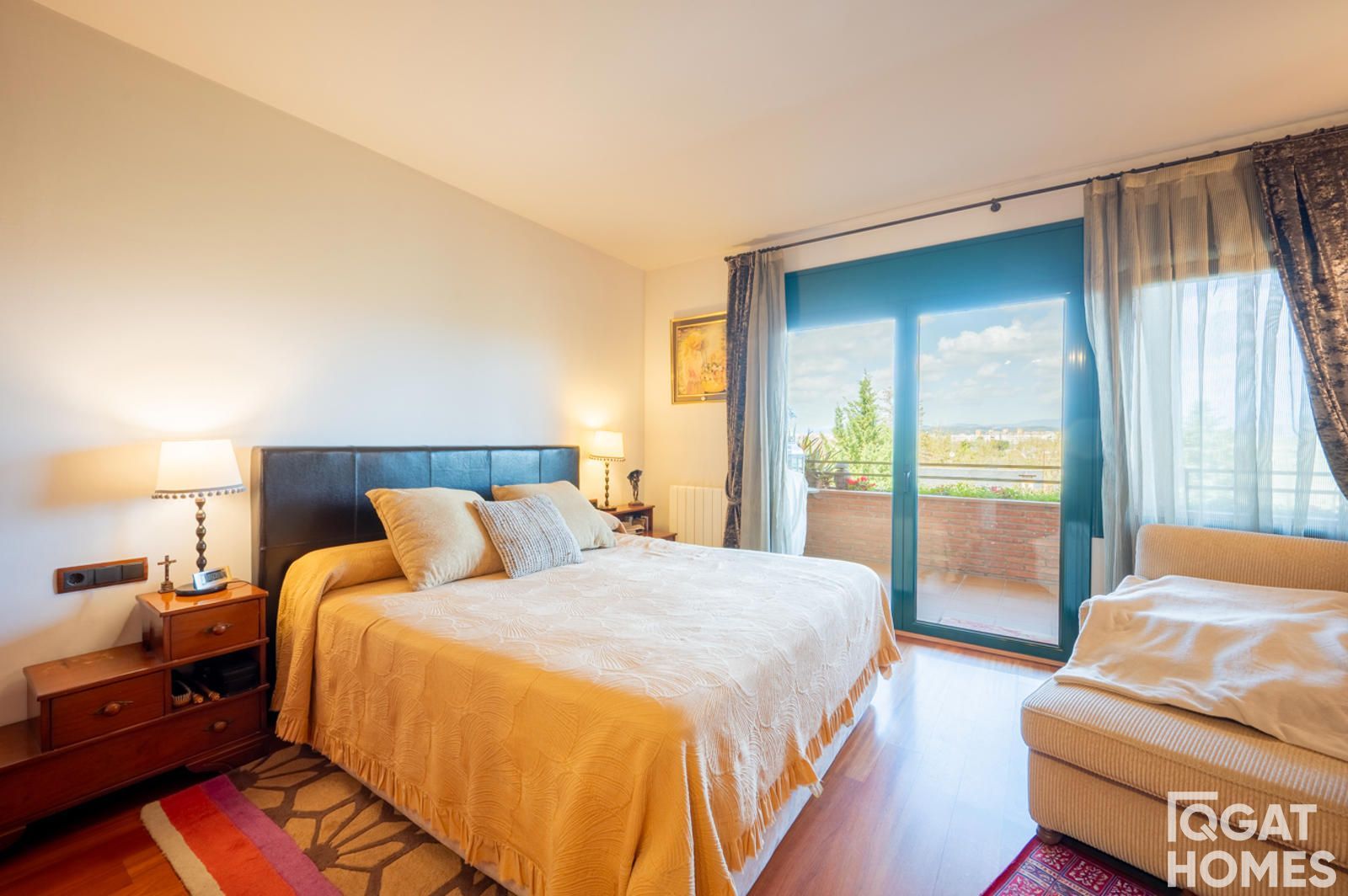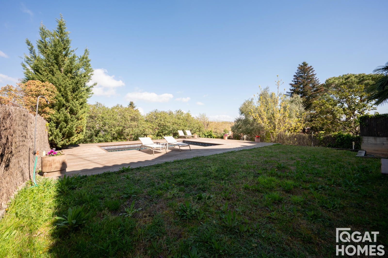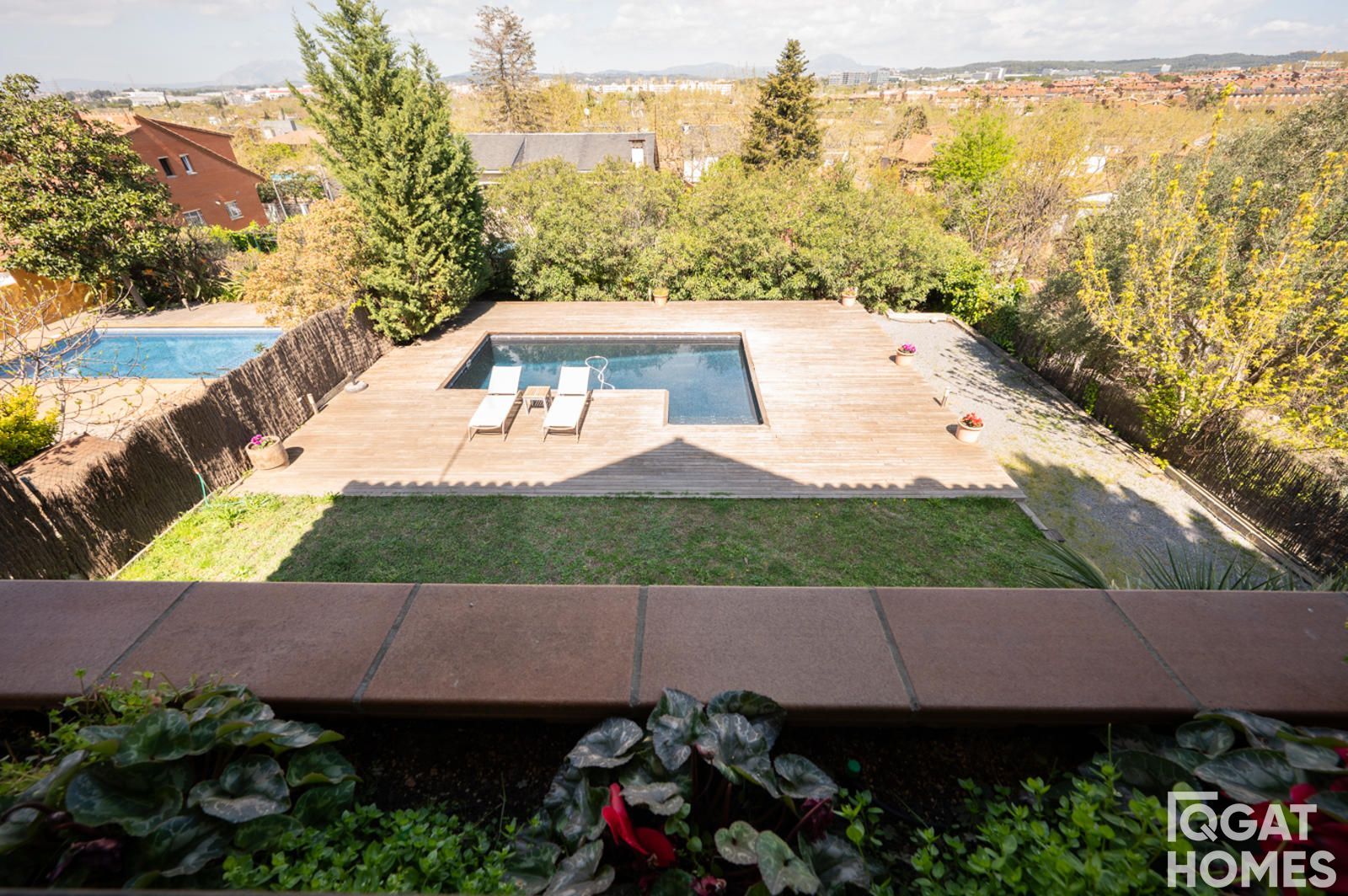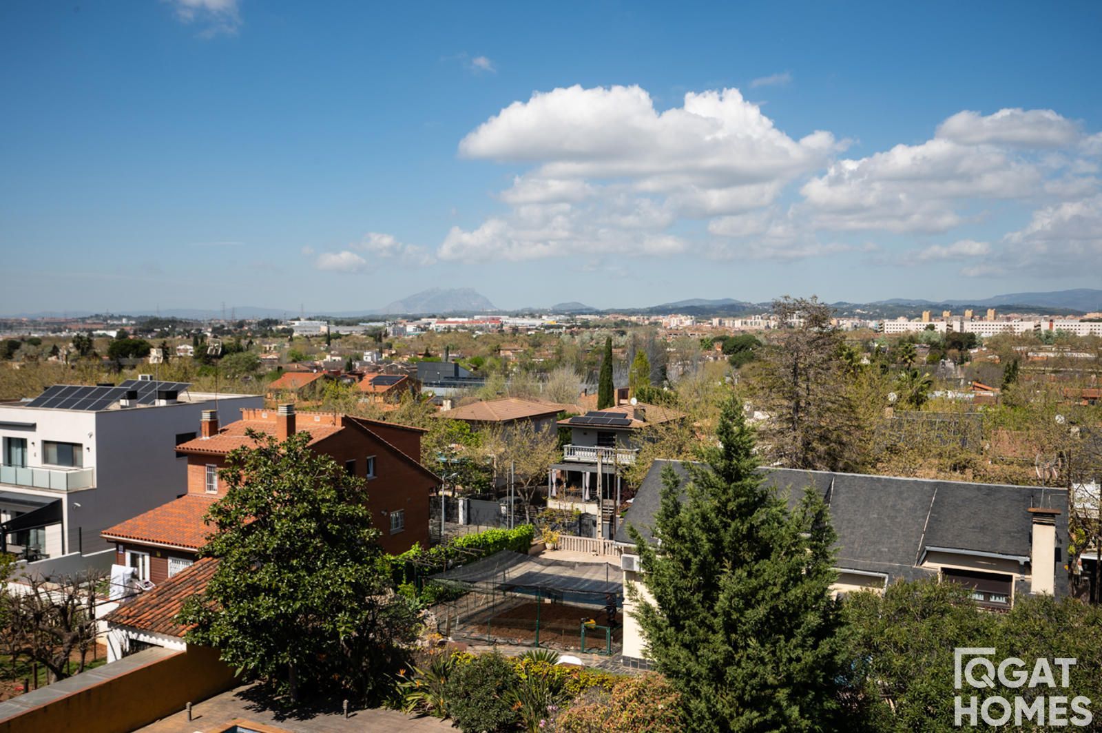 Qgat Homes presenta esta vivienda unifamiliar ubicada en una de las zonas más tranquilas y residenciales de Sant Cugat, rodeada de naturaleza y con unas vistas abiertas a La Mola y Montserrat. La vivienda se integra en un entorno donde predominan la calma y la luz natural.