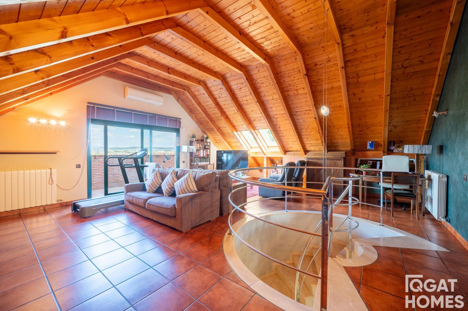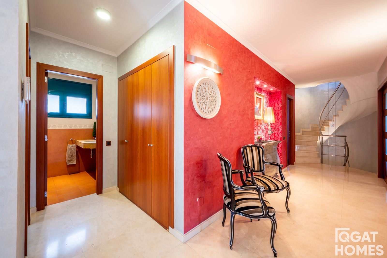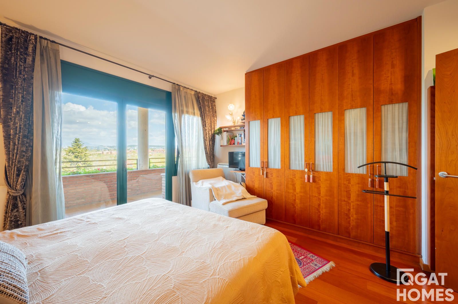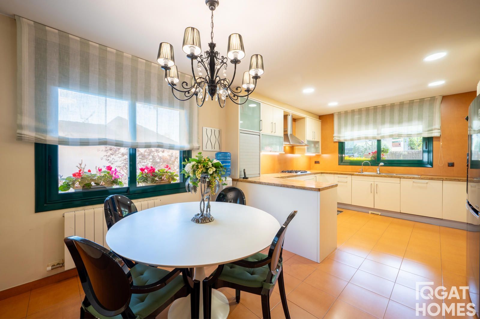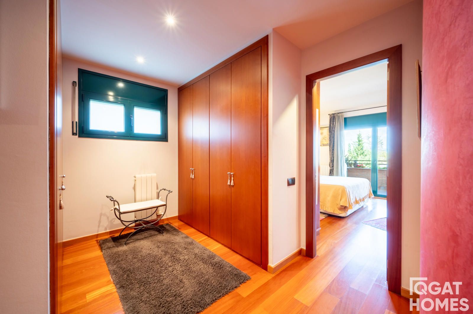 Qgat Homes presenta esta vivienda unifamiliar ubicada en una de las zonas más tranquilas y residenciales de Sant Cugat, rodeada de naturaleza y con unas vistas abiertas a La Mola y Montserrat. La vivienda se integra en un entorno donde predominan la calma y la luz natural.