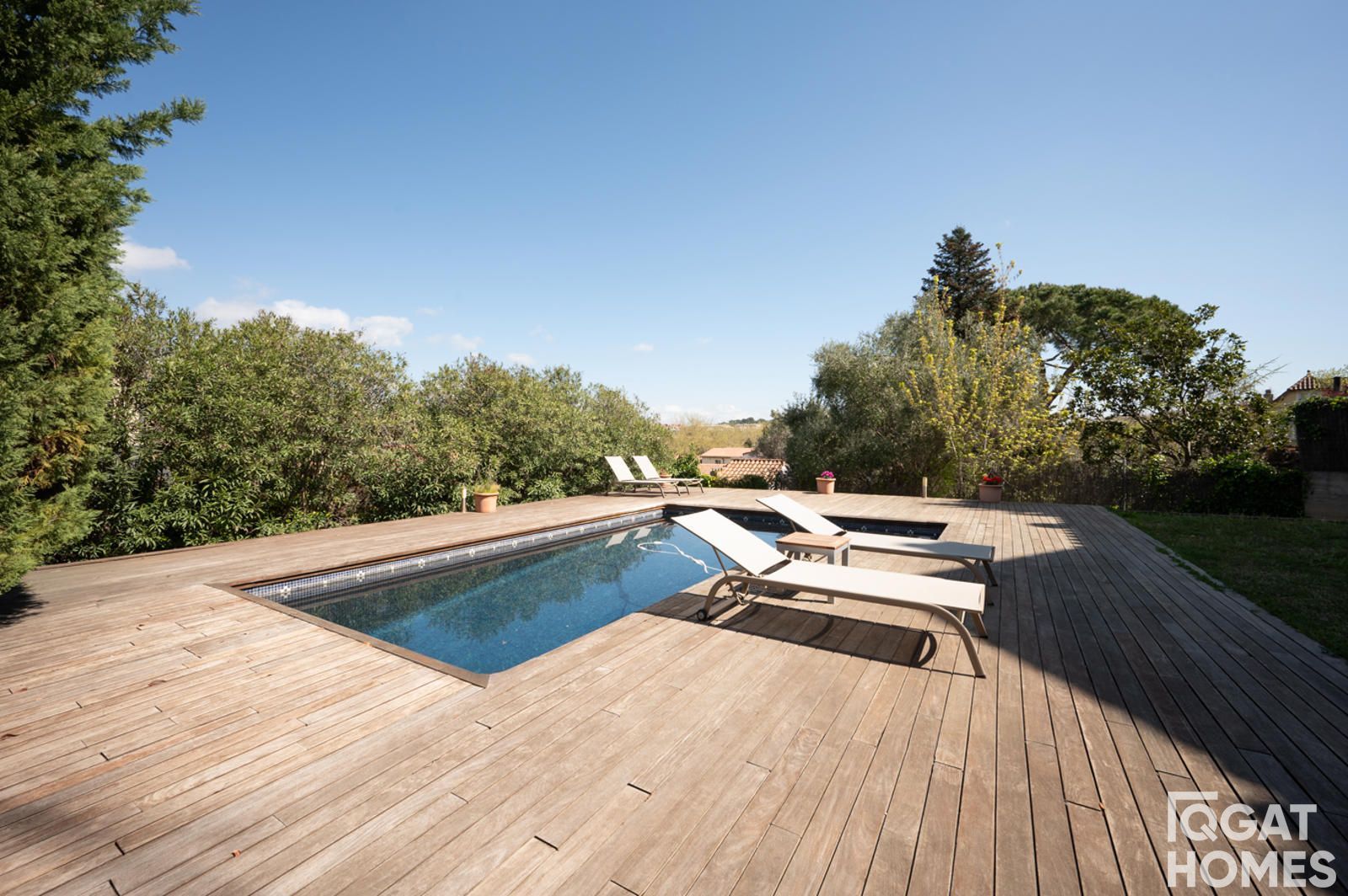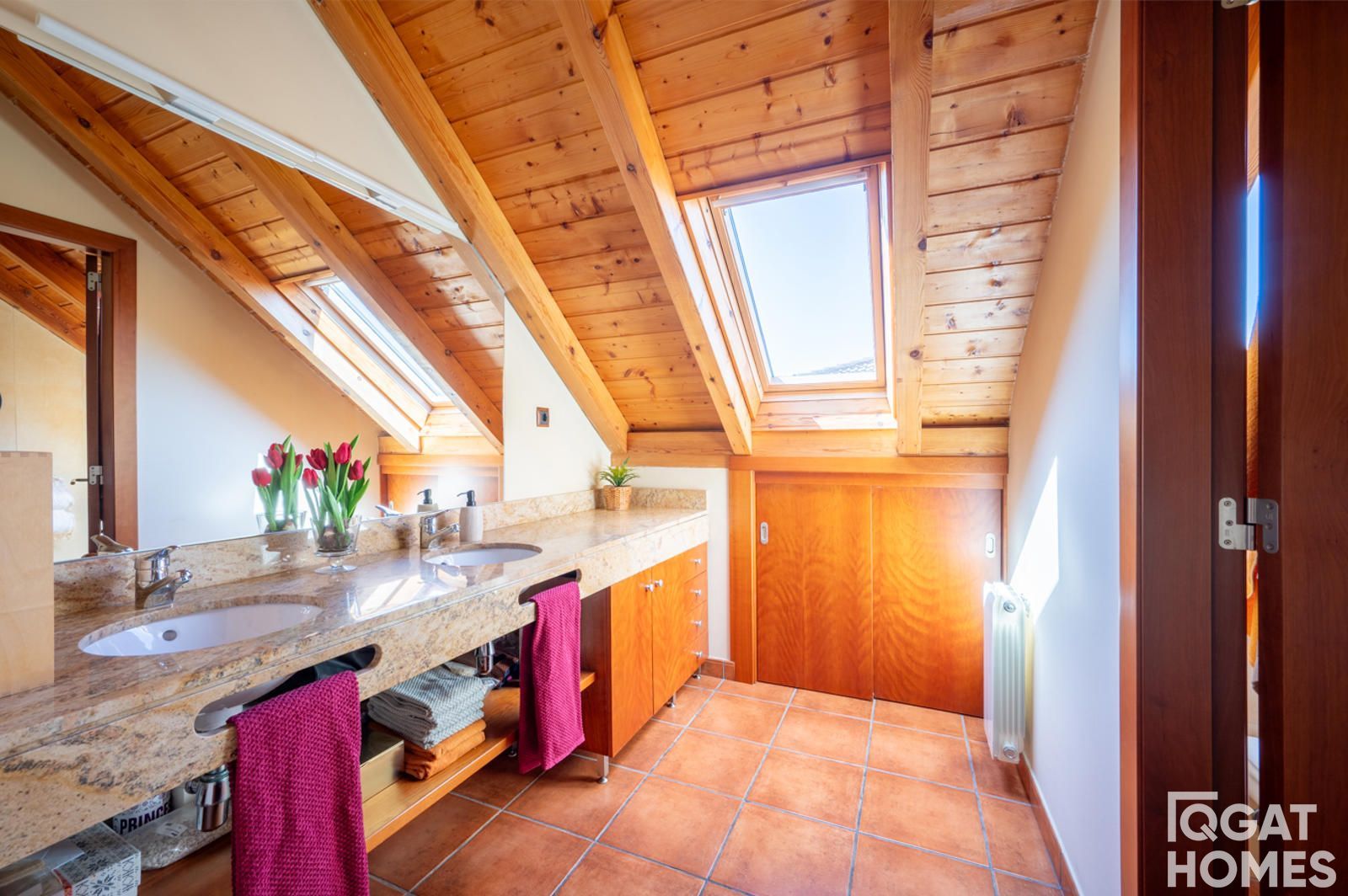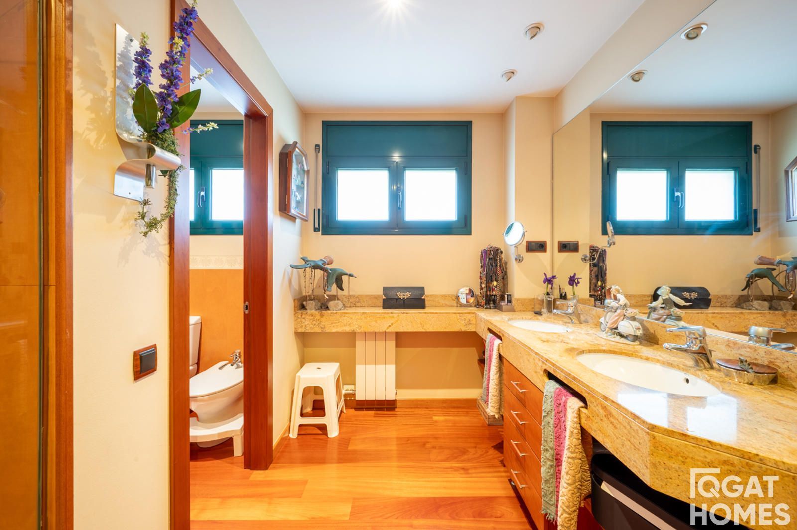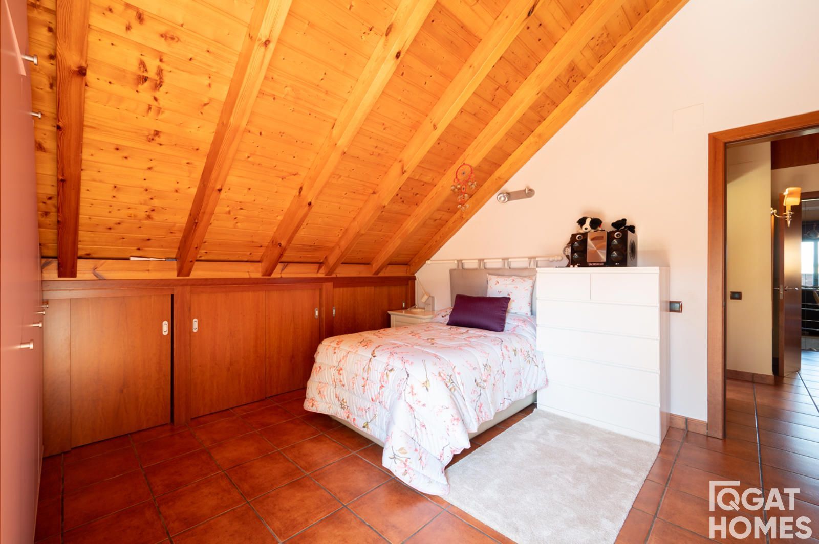 Qgat Homes presenta esta vivienda unifamiliar ubicada en una de las zonas más tranquilas y residenciales de Sant Cugat, rodeada de naturaleza y con unas vistas abiertas a La Mola y Montserrat. La vivienda se integra en un entorno donde predominan la calma y la luz natural.