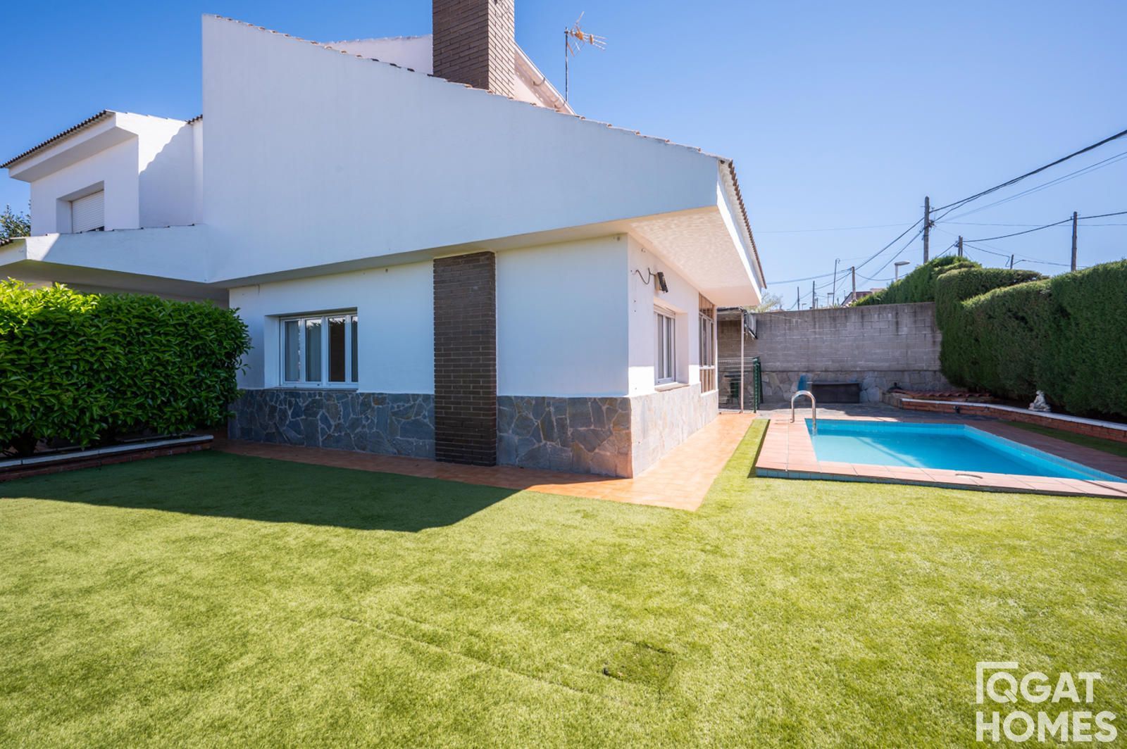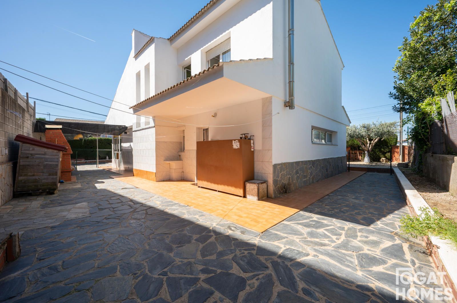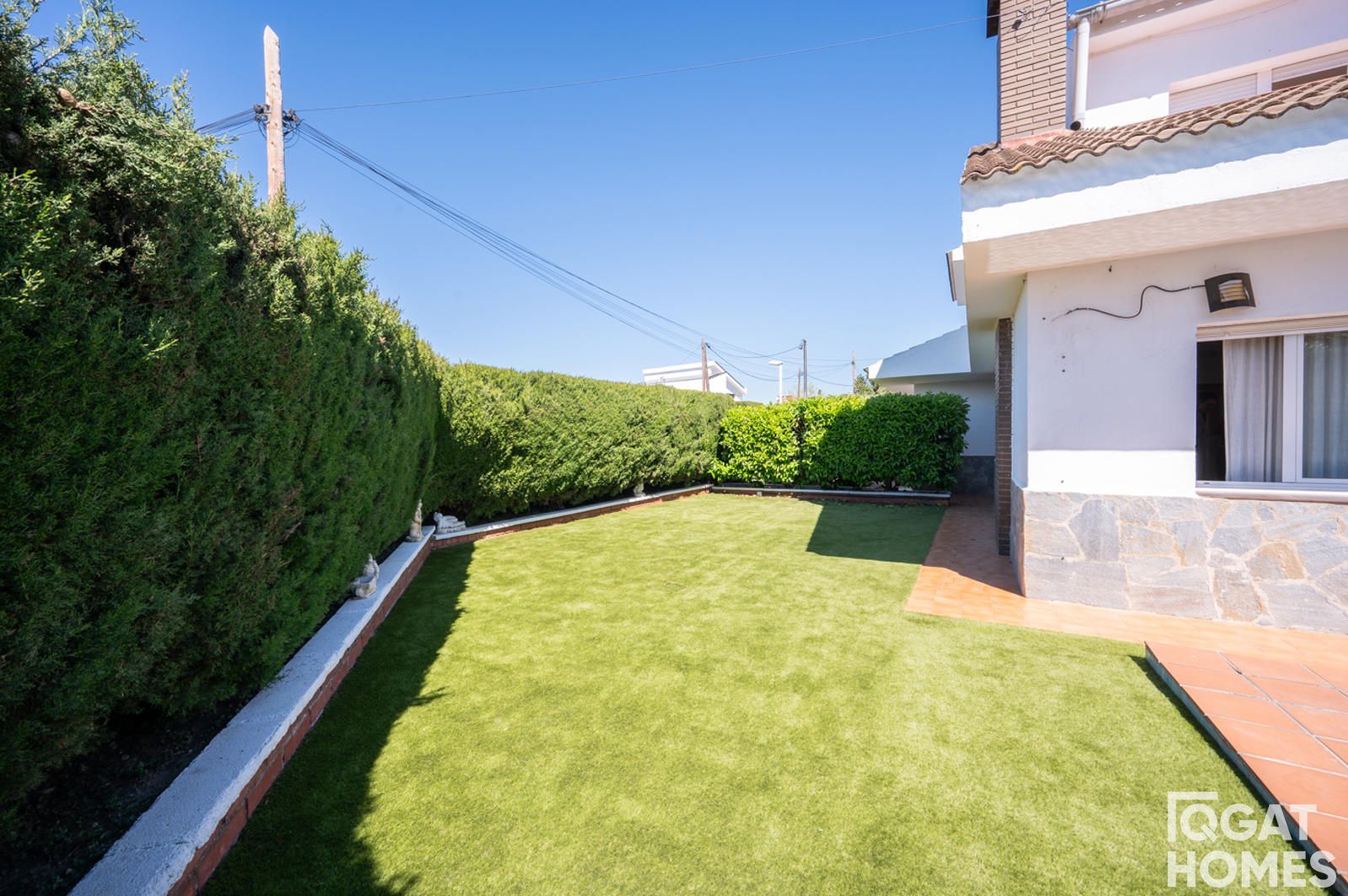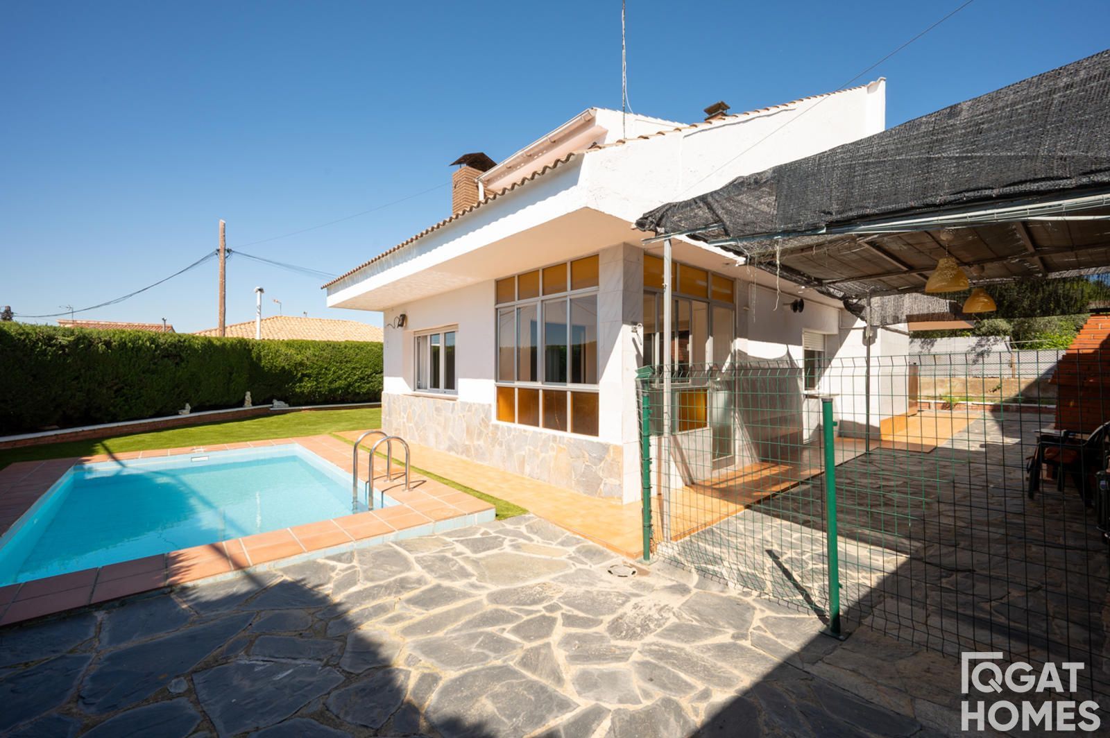 En el exterior, la casa está rodeada por un jardín plano y muy aprovechable, con piscina privada, zona de barbacoa con fregadero y un espacio cubierto ideal para reuniones o zona chill out. La parcela es esquinera de 432 m², con acceso desde dos calles, lo que aporta comodidad y privacidad.