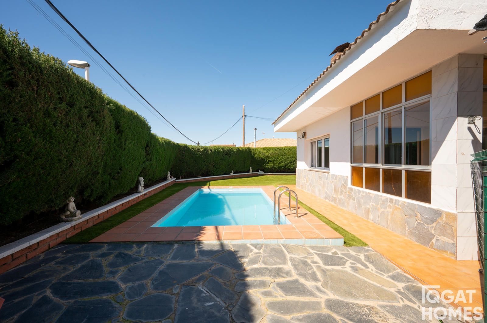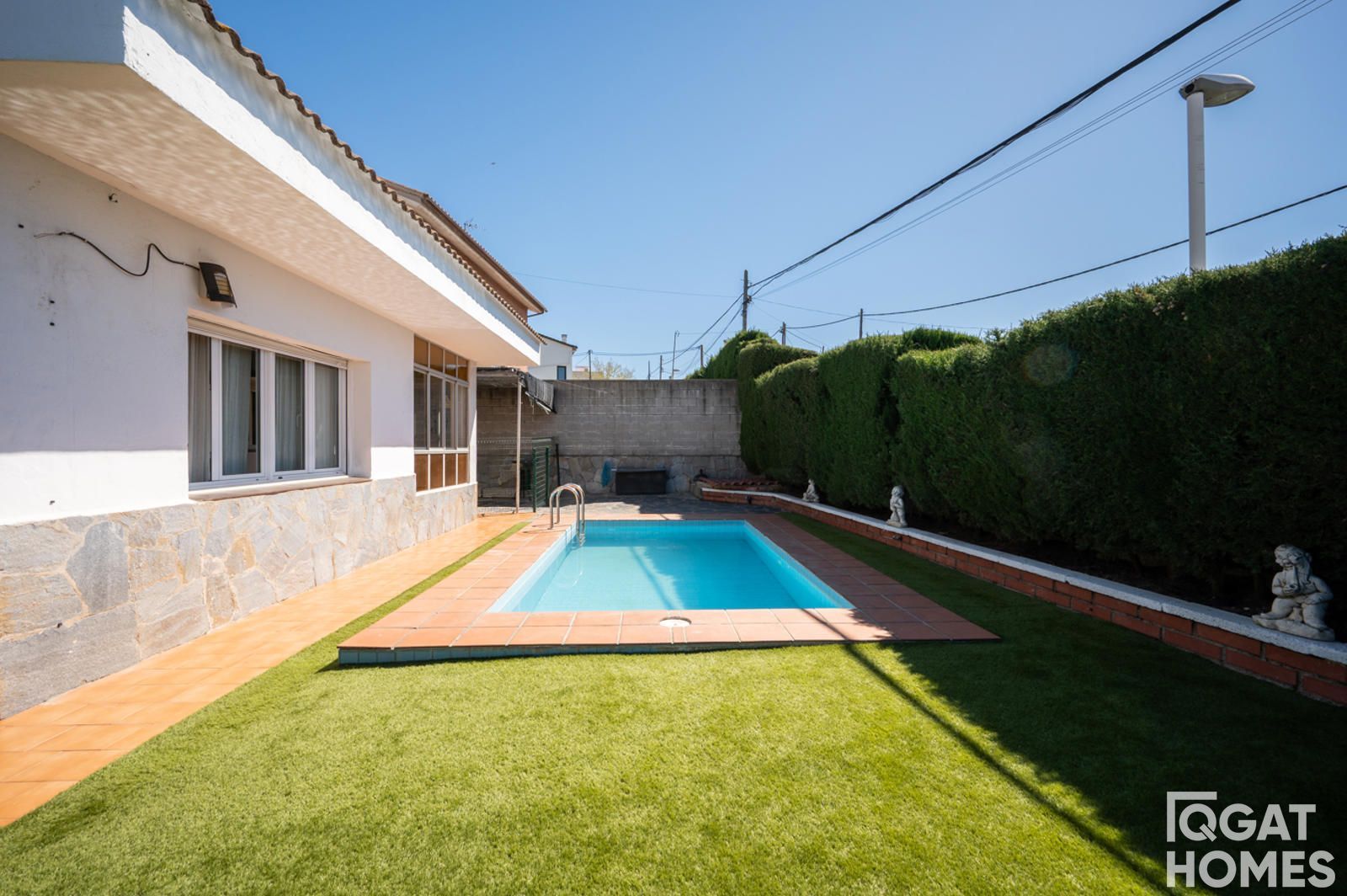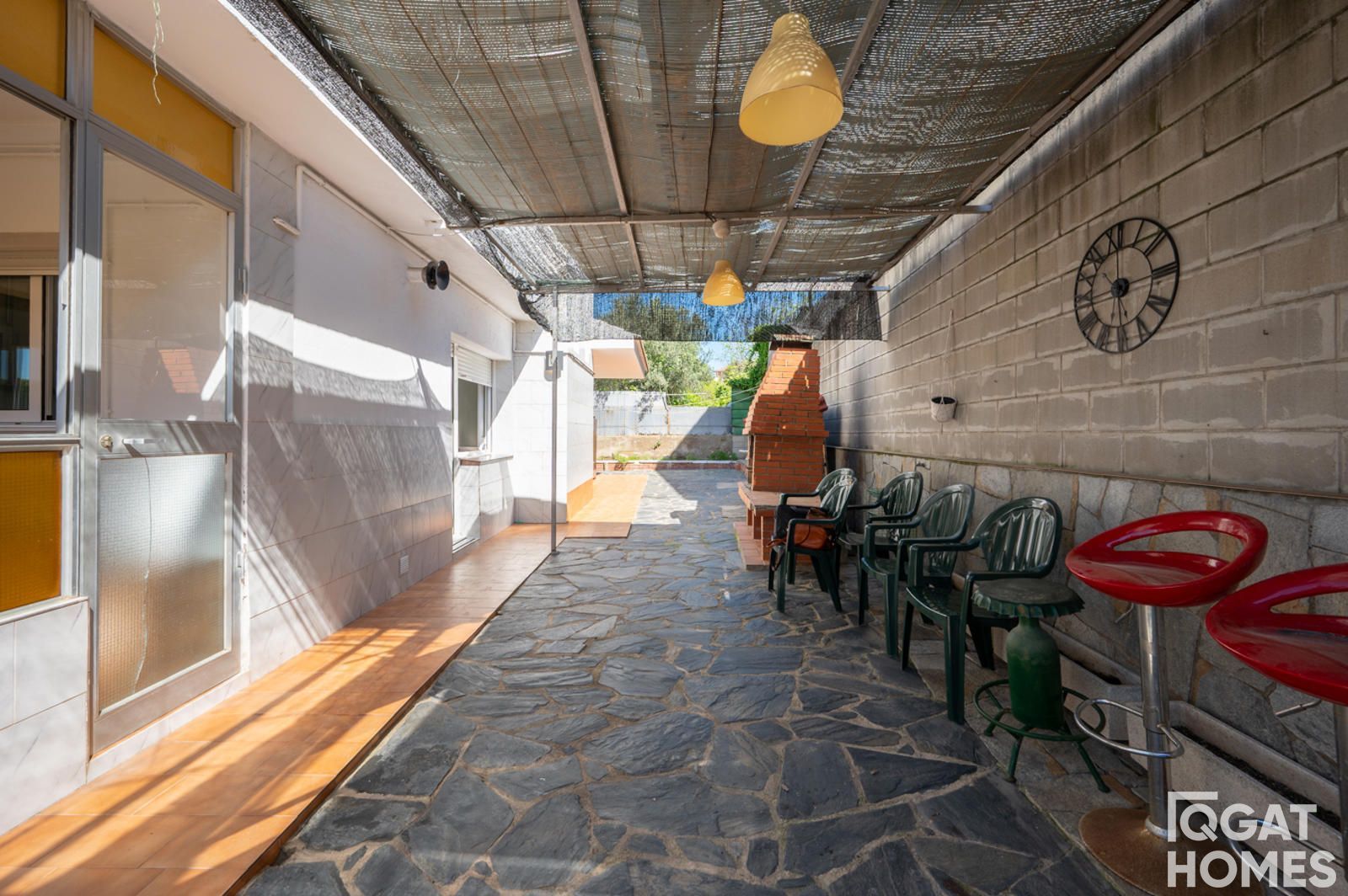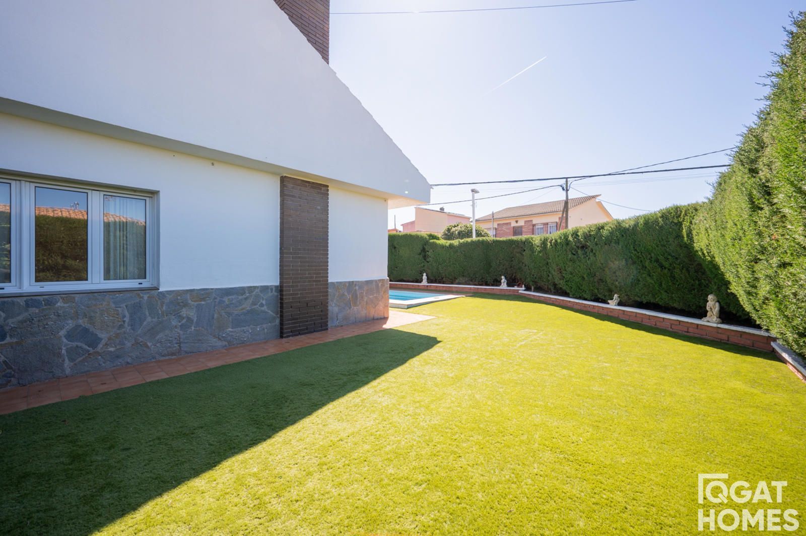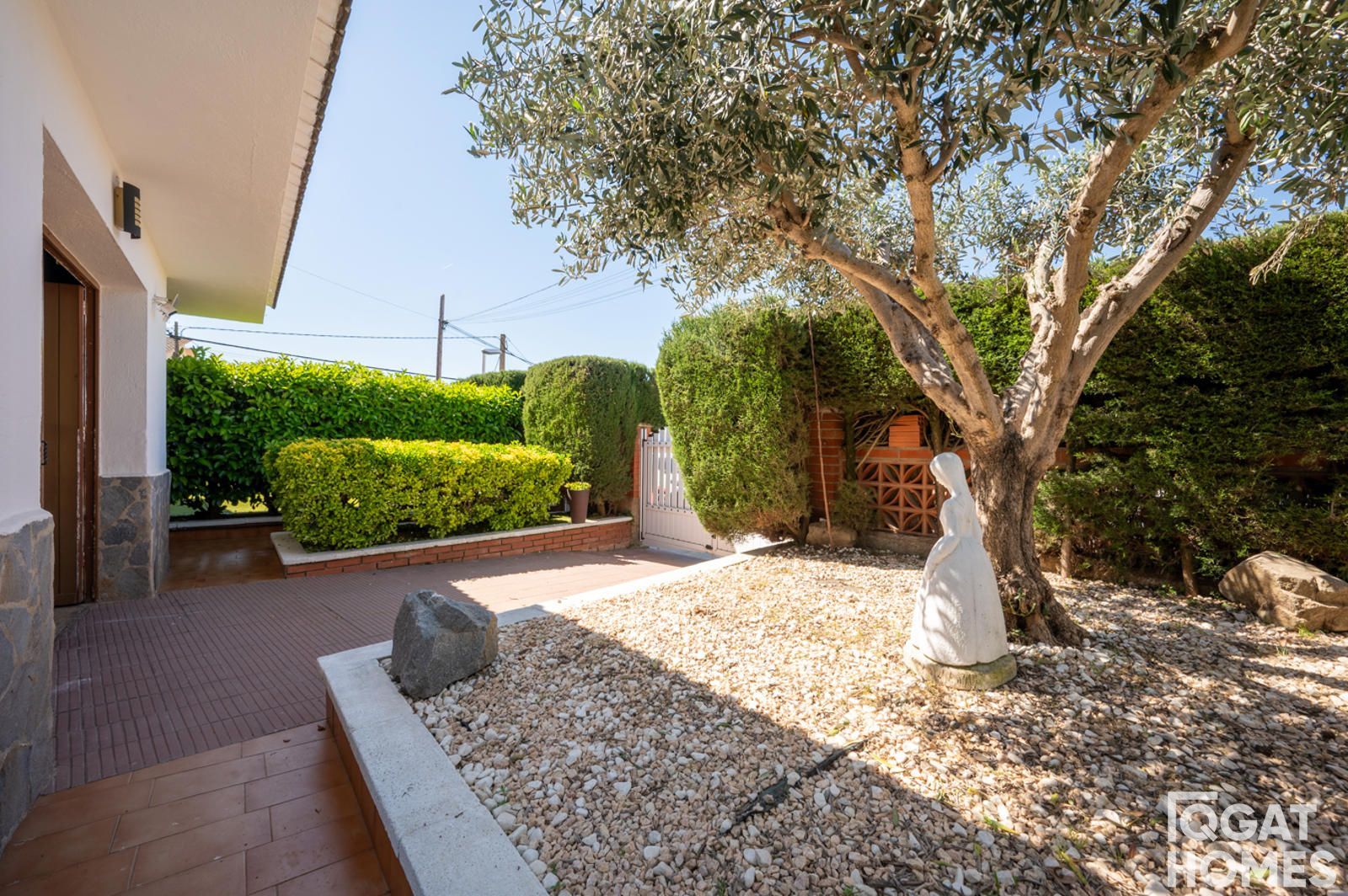 En el exterior, la casa está rodeada por un jardín plano y muy aprovechable, con piscina privada, zona de barbacoa con fregadero y un espacio cubierto ideal para reuniones o zona chill out. La parcela es esquinera de 432 m², con acceso desde dos calles, lo que aporta comodidad y privacidad.