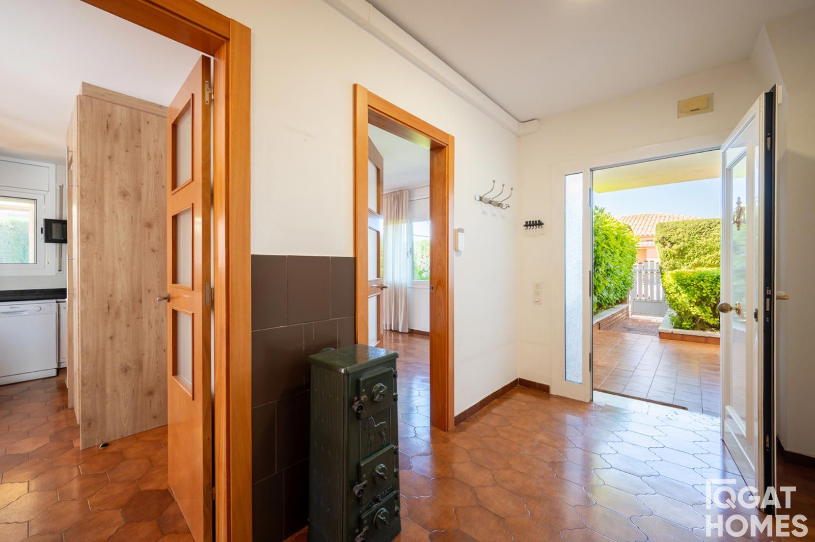En la planta principal nos recibe un hall de entrada que da paso a un salón comedor amplio y muy luminoso, con chimenea, un espacio ideal para el día a día y para compartir momentos en familia. La cocina es independiente, está totalmente equipada y tiene salida directa al jardín, lo que la hace muy práctica. En esta planta también encontramos un dormitorio junto al salón, perfecto como despacho o habitación de apoyo, un baño con plato de ducha y un garaje cubierto para dos coches, además de una plaza adicional en la parcela.